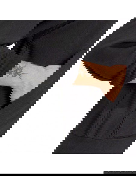 - French terry fabric. The standard cut with a slightly cropped back and dropped shoulders allows for mobility.