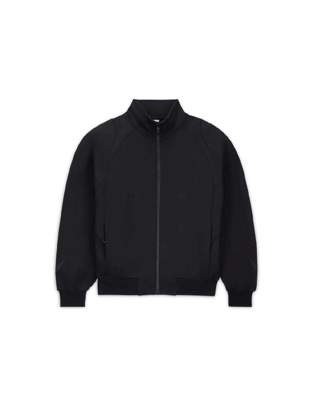 Elevate your street style with the Nike x OffWhite Track Jacket in sleek black. This collaboration between two iconic brands brings together premium quality and cutting-edge design for a standout look. The jacket features the signature OffWhite arrow logo on the back, adding a touch of urban flair to a classic track jacket silhouette.