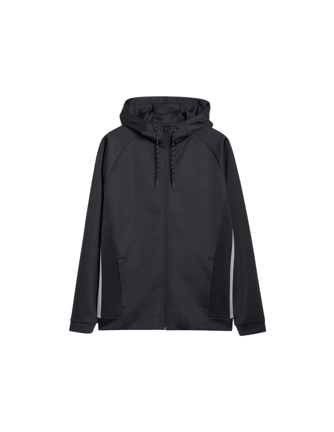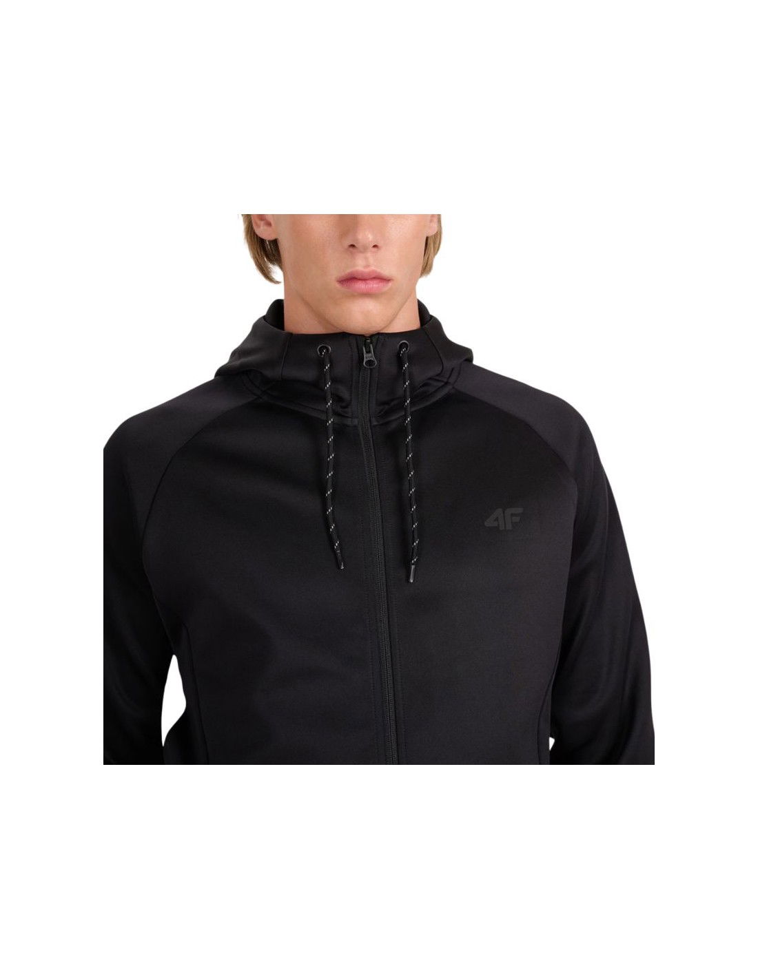 4F FNK M 4FWAW25TFSWM587 sweatshirt Properties: Men's sweatshirt 4F FNK The 4F men's sweatshirt is perfect for any type of training at various levels of advancement and intensity. Technical data: Main material: 95% polyester, 5% elastane Additional material: 100% polyester · Regular fit - comfortable fit without feeling tight · Standard hip length - versatile length for everyday wear Synthetic material - durable and easy to care for· Added elastane - increases flexibility and comfort of wearing· Solid colors - easy to combine with other wardrobe items Interlock knit fabric - smooth to the touch, soft and flexible · Neckline with integrated adjustable hood - additional protection against cold · Cuffs made of basic knit fabric - aesthetic and durable sleeve finishing 2 side pockets with zippers - practical space for small items · One-way zipper - functional fastening for ease of use · Raglan sleeves - freedom of movement and a sporty look 4FDry technology - quick-drying fibers effectively wick away moisture
