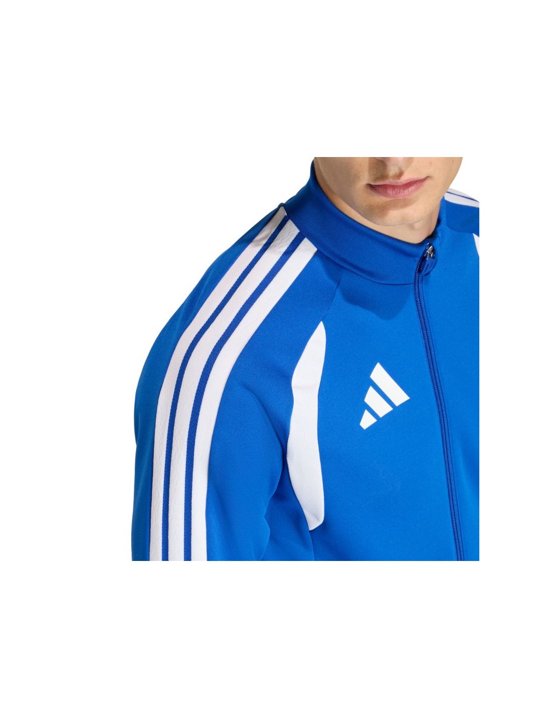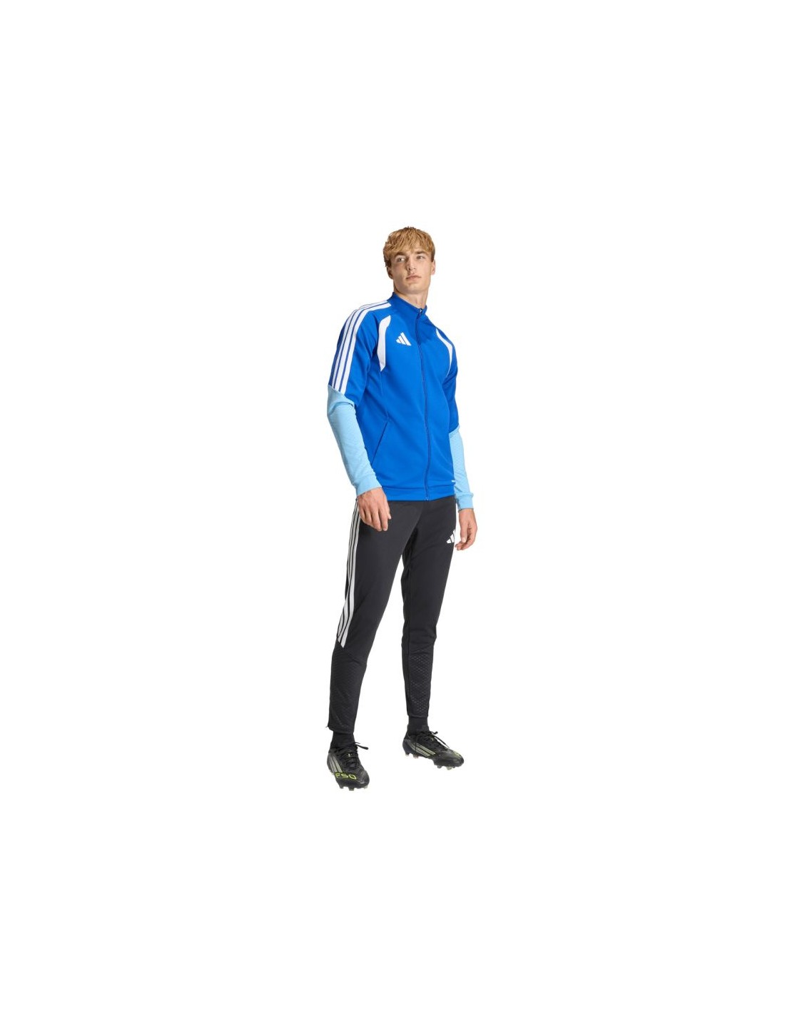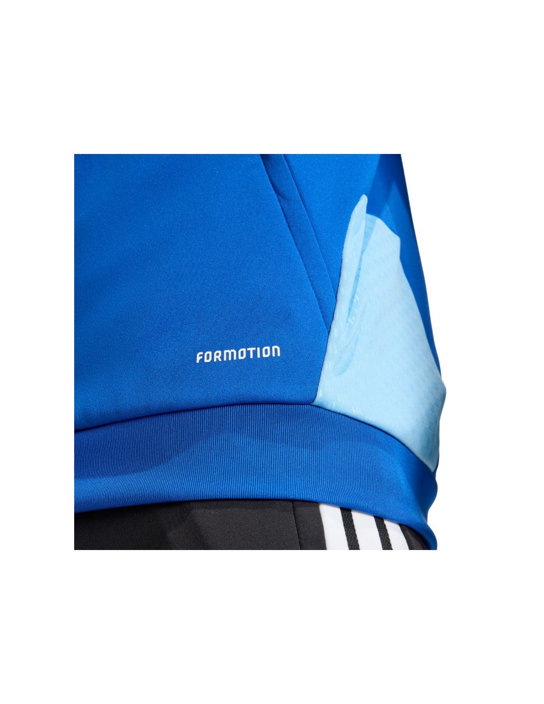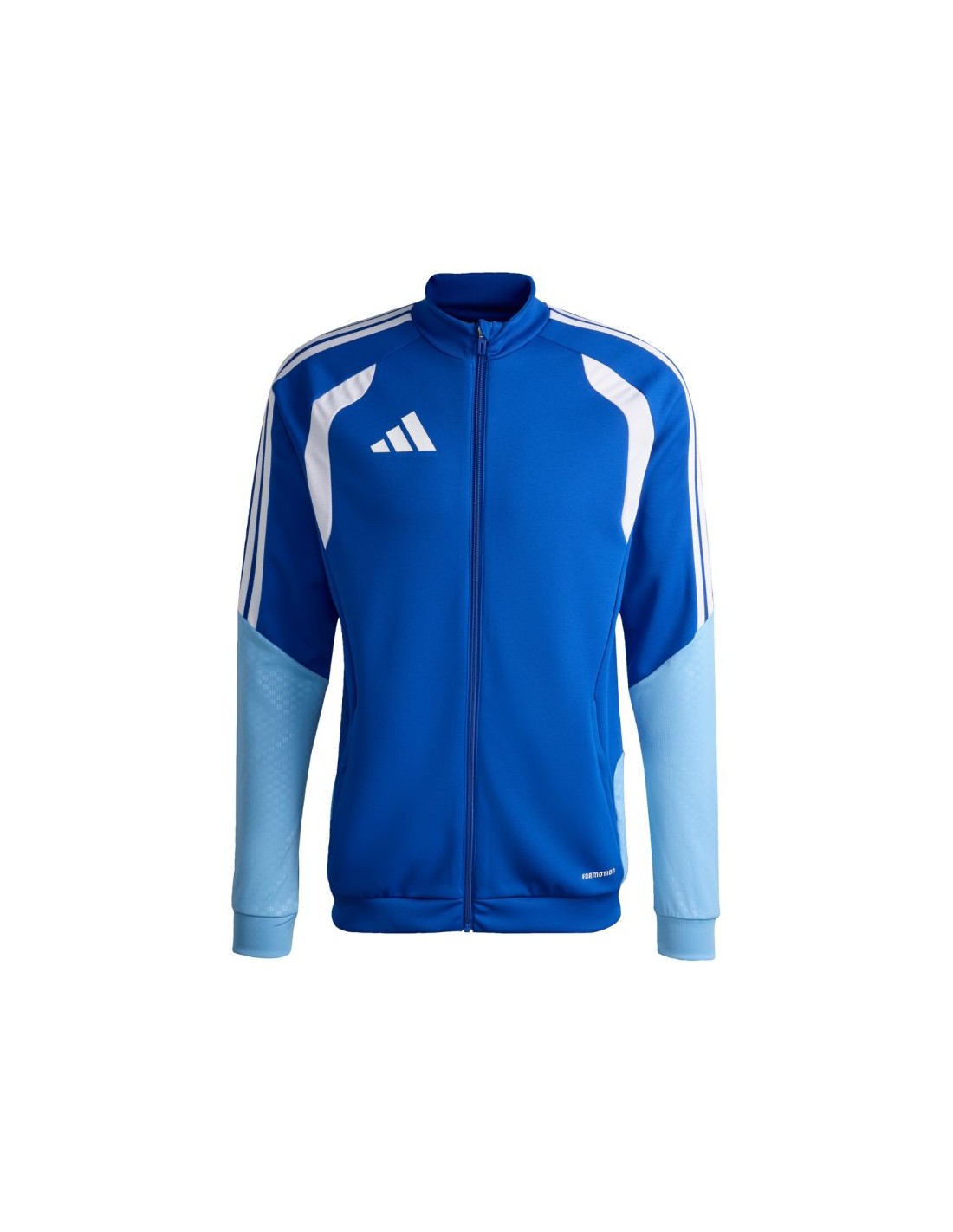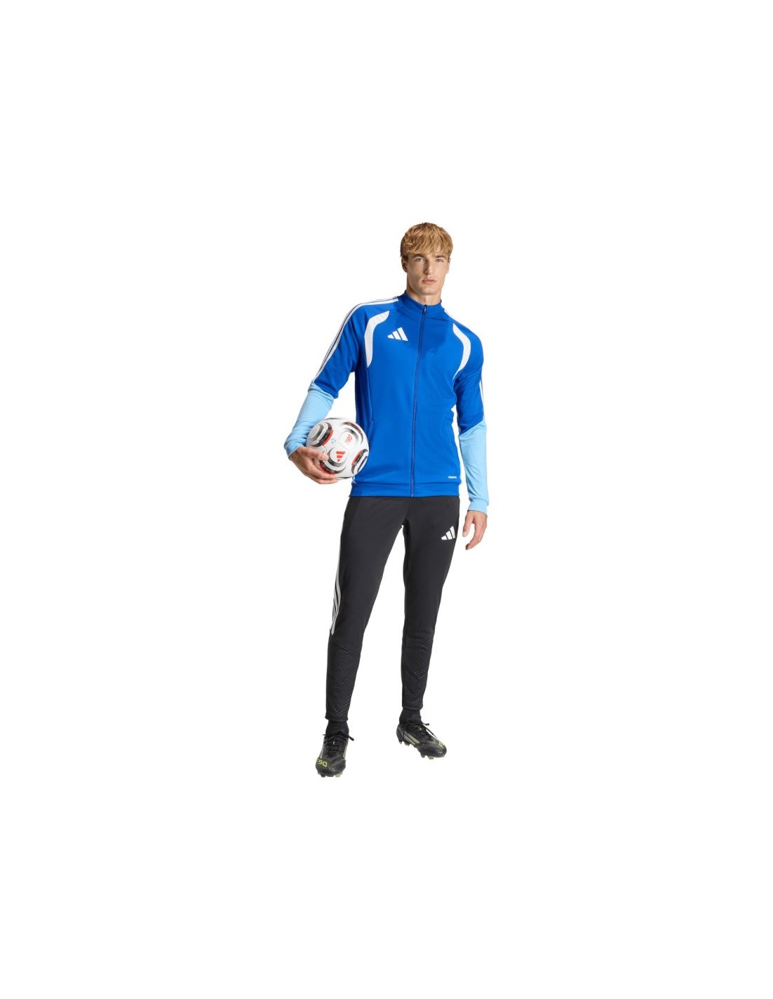 adidas Tiro 26 Competition Training Men's Sweatshirt, Blue KA7675. This adidas football sweatshirt for men is perfect for training. Stand-up collar. Full-length zipper with a protective flap. Slim fit. Formotion technology ensures excellent mobility. Mesh inserts on the chest. Straps on the shoulders. Subtle logo on the chest. Embossing on the sleeves and sides. Quick-drying fibers. Material: 100% recycled polyester