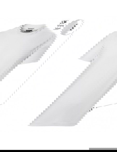 Single Jersey, 100% pre-shrunk cotton pre-shrunk cotton resistant to higher temperatures, washing temperature up to 95 °C (white) and 60 °C (colour), cut with side seams, neckline trim made of 1:1 rib knit, reinforcing seam on shoulders, Product available in two versions: with or without a brand label in the side seam (see colour chart). Option with label only while stocks last.