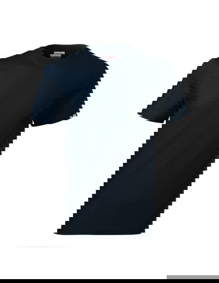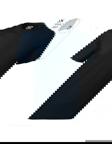 Single Jersey, 100% cotton (colour 12 material composition - 85% cotton, 15% viscose) durable, ideal for work environments, without side seams, neckline finished with 1:1 rib knit with 5% elastane, reinforcing tape on shoulders, Product available in two versions: with or without a company label on the sleeve hem (see colour chart). Option without a label only while stocks last.