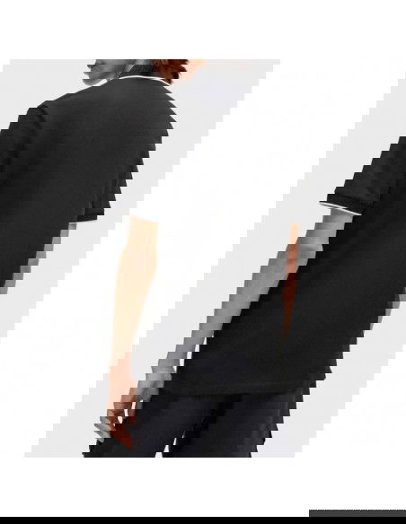 • Collar: Traditional polo collar with two-button placket