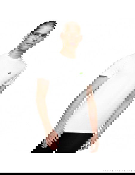 Men's 4F white short sleeve t-shirt with a stylish design, perfect for casual wear.