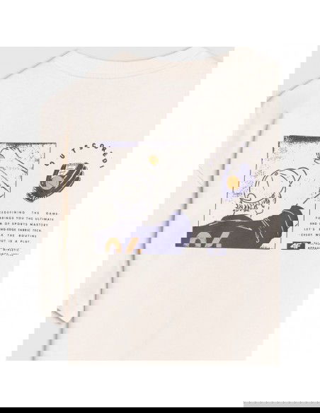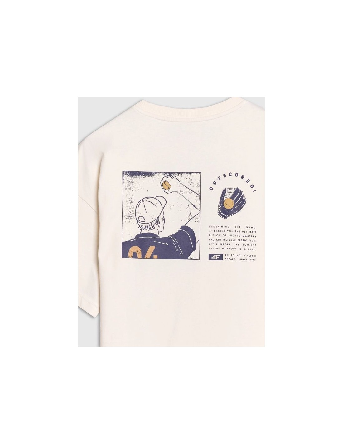 4F men's T-shirt - loose fit and everyday comfort The 4F men's T-shirt is a classic, sporty tee perfect for everyday wear. Made of 100% soft cotton, it provides comfort and durability for everyday wear. The loose, oversized fit guarantees complete freedom of movement and comfort regardless of the situation. Key features Weight 200 gsm - optimal material thickness ensuring durability and comfort of use. Oversize cut – a loose design that guarantees freedom of movement and a fashionable look. Single jersey fabric – smooth, soft and flexible structure for increased wearing comfort. 100% cotton – a natural material that is breathable, durable and pleasant to the touch. Round neckline - finished with light ribbed detailing that maintains the shape and enhances the aesthetics of the T-shirt. Baseball print – eye-catching, convex elements emphasize the sporty character of the model. Comfort and durability The 4F T-shirt, thanks to its thicker 200 gsm weight, is non-transparent and retains its shape even after numerous washes. It's an excellent choice for those who value comfort, durability, and a timeless, sporty style. Perfect for pairing with both jeans and sweatpants.