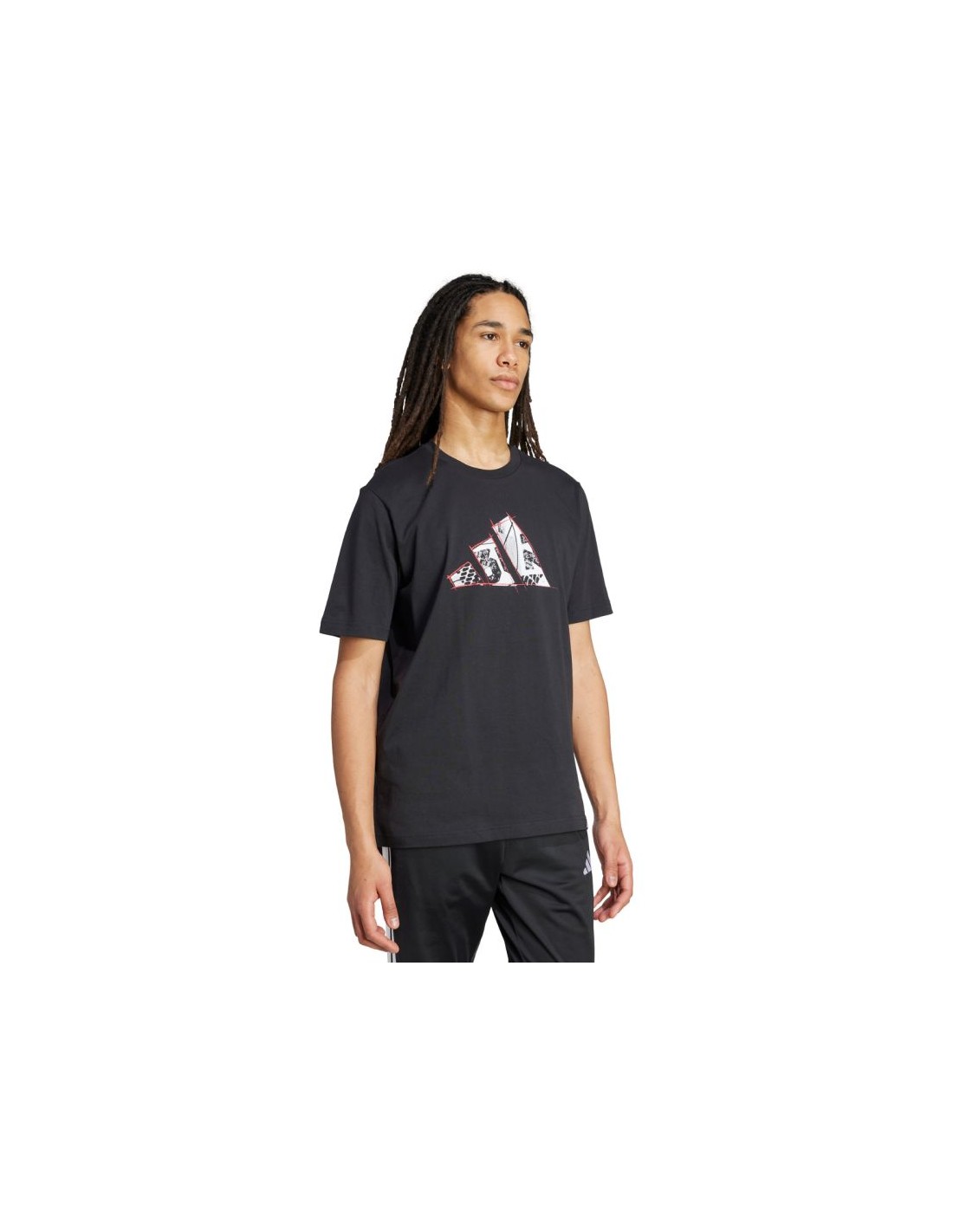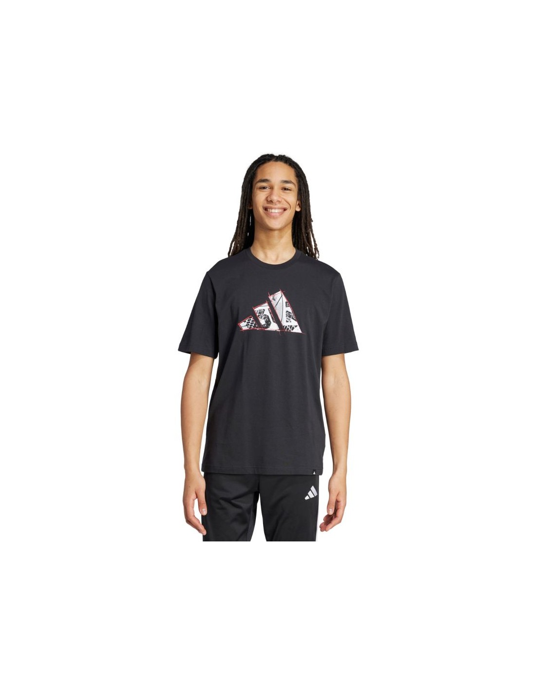 adidas Logo Graphic T-shirt M Properties: Men's adidas Logo Graphic T-shirt This men's adidas T-shirt guarantees everyday comfort and a stylish look. Cotton jersey ensures natural, free breathing and allows for unrestricted movement during activity. It features a regular fit with short sleeves. A rounded neckline. A large brand logo on the chest. Material: 100% cotton