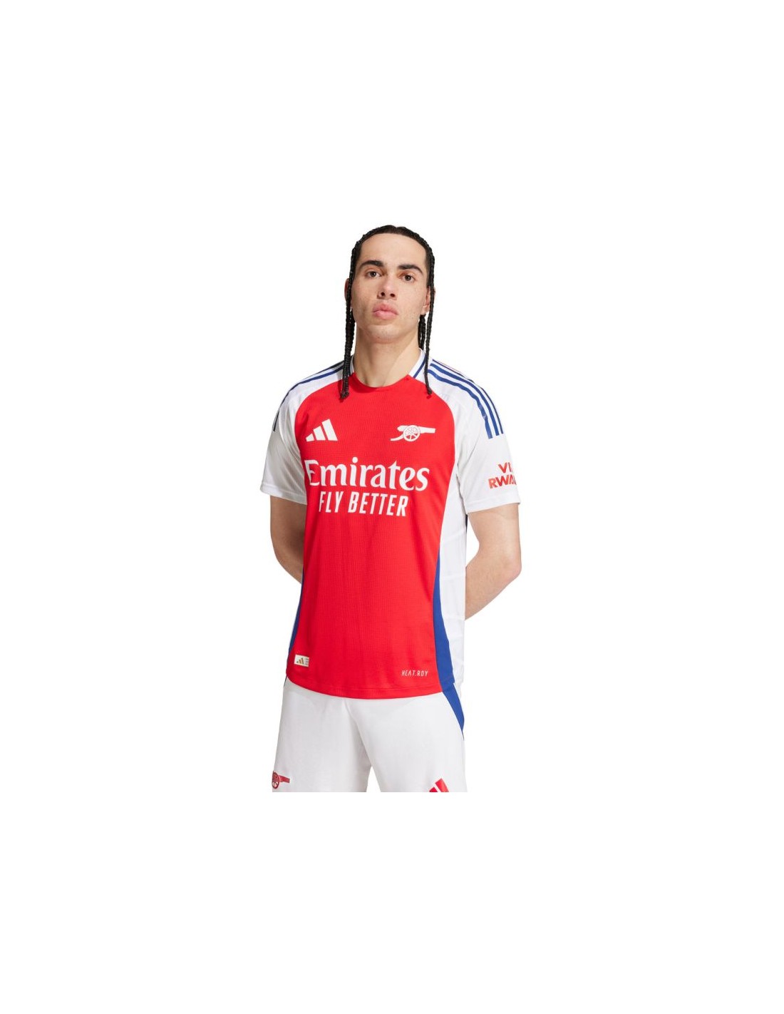 Men's adidas Arsenal 24/25 Home Authentic Jersey, Red IT6140. Show your pride as an Arsenal FC supporter with this adidas men's home jersey for the 2024/25 season. It pays tribute to the club's history. It's cut in a slim fit with a crew neckline. Soft doubleknit fabric provides a comfortable feel. Heat.Rdy technology. This adidas T-shirt features the Arsenal FC crest. This product is made entirely from recycled materials and is just one way to help eliminate plastic waste. Material: 100% recycled polyester
