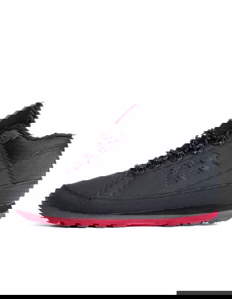 - The upper is made of eco-leather and is finished with subtle stitching.