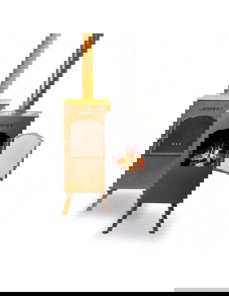 - The BonCarre fireplace is equipped with a high-temperature resistant coating to protect against damage and a removable spark guard to prevent wood from falling out and sparks from spreading.