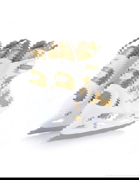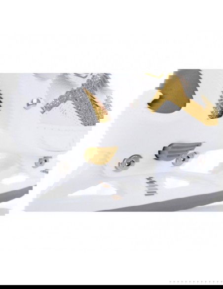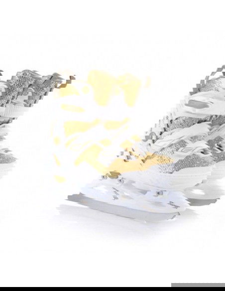TEMPISH Enbo Duo Girl Gold Adjustable Skates/Roller Skates TEMPISH Enbo Duo Girl Gold are adjustable children's skates designed for year-round recreational skating. Thanks to their innovative design, these skates allow you to replace the blades with wheels, which allows you to use them both on ice and asphalt, offering unlimited fun possibilities. Main features: Double Construction: They have been designed with versatility in mind. They can be easily converted from skates to roller skates by loosening three screws. This functional solution allows you to use them all year round, regardless of the season. Flexible Frame: The frame remains flexible even in extreme temperatures down to -20 ° C. The skates are ideal for recreational ice skating, as well as outdoor skating. Their durability at low temperatures guarantees reliability in all conditions. Comfort and Support: The soft, quick-drying lining ensures comfort even during long rides. The anatomically shaped inner boot combined with the external plastic frame provides solid support for the ankle. Thanks to this, the TEMPISH Enbo Duo Girl Gold model is perfect for both beginners and more advanced young skaters. Easy Size Adjustment: The skates are equipped with a simple size adjustment system using a button on the side of the frame, allowing easy adjustment within three sizes. This practical solution allows for longer use of the equipment despite the growing child's foot. Quick Velcro Fastening: One of the key advantages of this model is the lack of traditional laces, which have been replaced with a convenient Velcro dry strap fastening. Thanks to this, putting on and taking off the skates is quick and easy. The set includes two additional Velcro straps, which can be used to extend the ankle strap if necessary. Additional Features: To make putting them on easier, a practical loop has been placed on the tongue of the skates. Additionally, for increased safety, the back of the skates is equipped with reflective elements that increase the visibility of the child while skating in low light. TEMPISH Enbo Duo Girl Gold is the perfect choice for girls who value comfort, safety and versatility. Thanks to their advanced design and easy adjustment, these ice skates/rollers will provide many hours of fun both on the ice and on the asphalt. TECHNICAL PARAMETERS Intended use Recreational and fitness skating, medium and heavy load, for beginners and advanced users Frame TEMPISH UNI CARBON steel - coated steel blade Wheel size Size 29-32: wheels 64mm Size 33-36: wheels 70mm Size 37-40: wheels 72mm Wheel hardness 82A Bearings 608, ABEC 5 Lacing system Double-sided buckle with AUTO LOCK security, 2 Velcro straps Type | Shoe shell Three-piece skeleton - material: TPU - flexible to -20°C, soft insert, PVC BRILLIANT RESIST, NYLON+NYLEX Liner (inner sock) CAMBRA 26Z brushed nylon with inner lining Brake Included Top fastening Buckle 45-degree fastening Velcro Axles - Weight limit 60 kg