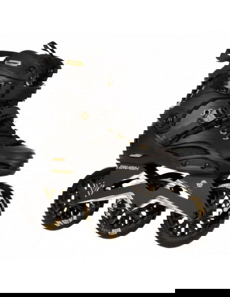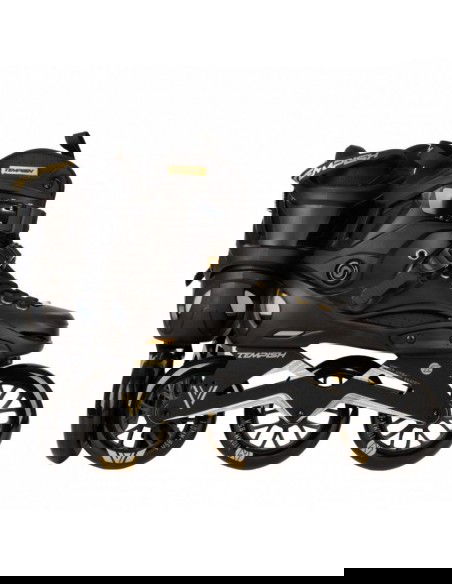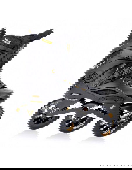 TEMPISH VIBER LE 110 Freeskate skates a hard boot and fast large 110 mm wheels are the perfect combination. Skates designed for both shorter city rides and long trail trips. These skates are perfect for advanced and experienced skaters. Thanks to high-quality materials and carefully crafted, these skates provide not only excellent performance, but also maximum comfort and safety during every ride. Main features: Boot: Made of a hard, composite material, providing a strong foot hold and stability while riding. It has a ventilated insole that allows air circulation and comfort. Fastening: Equipped with a metal self-locking buckle and a micro buckle system on the instep strap, ensuring a precise and comfortable fit. Chassis/rail: Heavily reinforced chassis made by CNC with the possibility of transverse and longitudinal adjustment, and screws mounted on solid aluminum blocks. Wheels: Three 110 mm diameter wheels ensure high speed and stability. Made of PUC, with a hardness of 85A, they offer excellent grip and durability. Bearings: High quality chrome ABEC-9 with rubber cover for easy cleaning and maintenance. Customization: Possible replacement of plastic external protectors and instep belt. It is possible to mount smaller wheels in the chassis (minimum recommended size 90 mm). Liner: Ventilated liner with neoprene toe area for increased comfort. Elastic loop on the tongue makes it easy to put on. The TEMPISH VIBER LE 110 skates are an excellent choice for advanced skaters looking for a combination of durability, stability and speed. Their solid construction, innovative solutions technological and personalization options make them suitable for both urban escapades and long routes on trails. TECHNICAL PARAMETERS Intended use Street (urban) and freestyle riding, advanced and experienced riders. NC frame additionally reinforced, one-piece, adjustable transversely and longitudinally Wheel size 110 mm Wheel hardness 85A Bearings 608, ABEC 9 FitGo lacing system Type | Shoe shell Hard composite Liner (inner sock) Thin nylon, absorbent microfiber. Under the lining in the heel part, shock-absorbing quiet The block is made of TPR material, which perfectly absorbs vibrations and shocks, is quite thick, soft and comfortable. Brake None Top fastening Buckle 45-degree fastening Buckle Axles 6mm Weight limit 100 kg