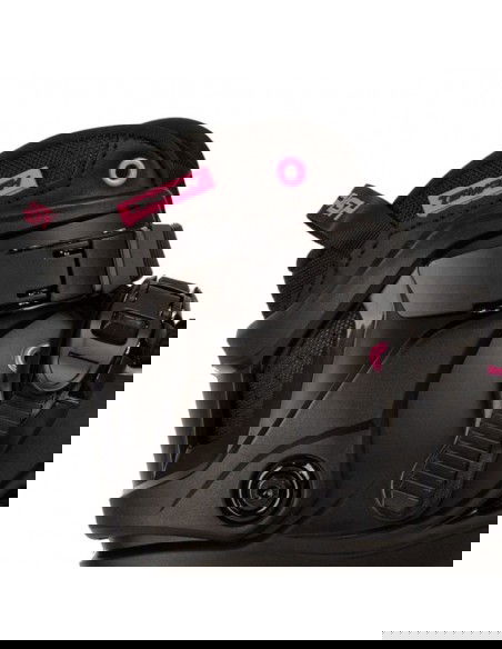 - Buckles: The skate is equipped with a self-locking top metal buckle with a bend at the end for a better grip and an instep strap with a single-step micro buckle for easy tightening and loosening. The plastic protectors on the outside of the skate and the instep strap are replaceable.