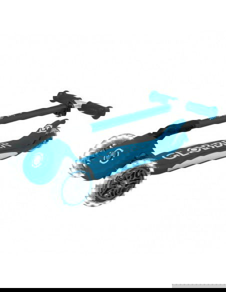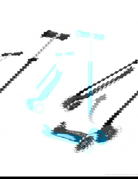 - 3-wheel scooter with Globber's patented folding system with a safety button that folds the scooter into a stroller mode. Conveniently carry, roll or store after play!