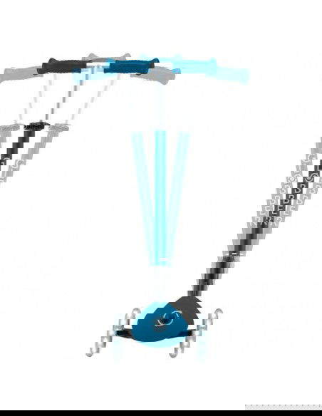 - Adjustable 3-wheel scooter with LED lights, with 4-position anodized aluminum T-bar handlebar (67.5cm, 72.5cm, 77.5cm, 82.5cm from the ground) with easy-to-use clamp and comfortable ergonomic TPR grips for a comfortable ride.