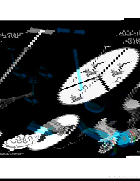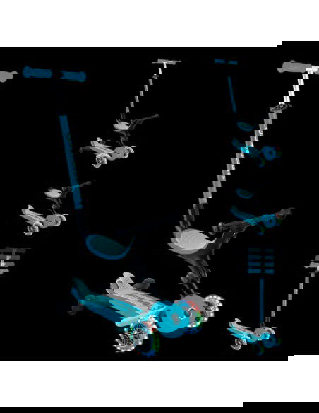 Multifunctional scooter with a seat, made of 32-34% GRS plastic, equipped with light-up wheels