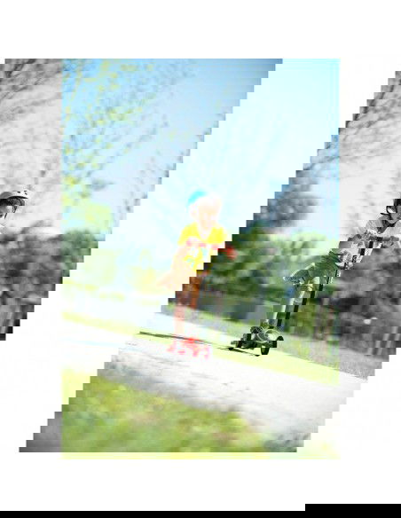 - Light, solid construction - aluminum handlebar, deck made of hard and thick polypropylene reinforced with 30 cm long nylon fiber.