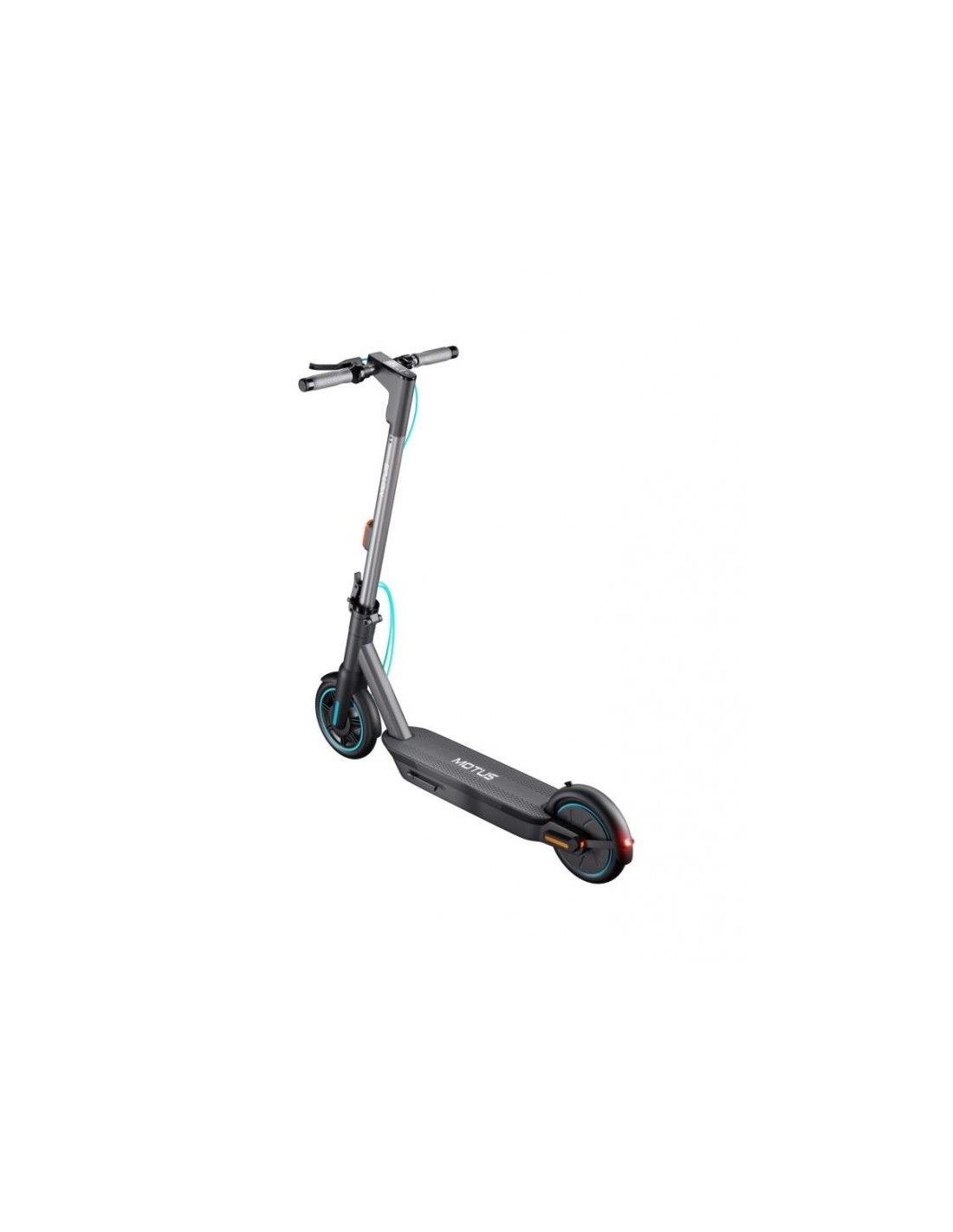 Driving pleasure The Motus Scooty 10 Gen5 is the fifth generation of this scooter model. As a result, we continue to refine the materials and technologies used every year to ensure your scooter provides you with the most enjoyable riding experience possible. The Motus Scooty 10 Gen5 electric scooter combines powerful performance with dynamic and safe riding. This model features features such as turn signals and reflectors, as well as a mudguard with a bracket that provides stability and shock resistance. See why the Motus Scooty 10 Gen5 is the best choice. Turn signals and reflectors Excellent visibility on the route The Motus Scooty 10 Gen5 scooter is equipped with turn signals and reflectors, significantly increasing your visibility on the road. Turn signals allow you to quickly signal any intention to turn or pass. This means you no longer have to take your hands off the handlebars to warn others about a change of direction. This solution improves safety and provides greater comfort while traveling. Reflectors placed on all sides ensure you are visible even from a distance, after dark or on a cloudy day. The stable construction also ensures safety, ensuring a confident and comfortable ride. Constant and pulsed lighting Triple security power The front lights, with increased power of 2.5W, guarantee excellent visibility after dark. Numerous reflectors also ensure safety. Flashing lights, activated when braking, warn other road users that you're stopping. This will cause them to brake or evade you. 700W motor The power to overcome any obstacle The 700W peak motor allows you to effortlessly climb slopes, even those with a 20° incline, while carrying a load of up to 120 kg! The rear-wheel motor ensures stable driving and excellent maneuverability. This model easily overcomes urban obstacles. This ensures you always feel safe, even when cornering. 10-inch wheels The Motus Scooty 10 Gen5 scooter features 10-inch pneumatic wheels that allow for easy maneuverability, even on uneven surfaces. Compared to 8.5-inch wheels, this is a huge advantage, guaranteeing a comfortable and stable ride. The larger size also provides better traction and shock absorption. 17-centimeter platform Always a comfortable posture This electric scooter's design is also suitable for taller riders. The handlebars, at a height of 102 cm, allow for an upright riding position. The 17 cm wide deck allows for both feet to be placed side by side, improving stability and comfort. The large 10-inch wheels provide good traction, facilitate curb climbing, absorb shocks, and make bumps and uneven surfaces less noticeable. Unique design The Motus Scooty 10 Gen5 is a fusion of harmony and style. Intense turquoise contrasts perfectly with elegant gray, creating a unique color combination that will help you express your personality. Our designers have meticulously considered every detail to ensure you always feel special. Design Solid reinforcement The Motus Scooty 10 Gen5 folds very quickly and conveniently. In just a few simple steps, you can fold the scooter to a compact size, making it easy to carry anywhere or store in your trunk. This model also features a safety hook that prevents accidental unfolding. A reinforced frame and anti-slip mat ensure additional safety. You can use the Motus Scooty 10 Gen5 scooter fold in just 3 seconds 15Ah battery Impressive range The 15Ah battery provides excellent range. A person weighing 60 kg can travel up to 65 km without the need for additional charging. And for shorter distances, the battery won't require frequent recharging. KERS Technology from Formula 1 The KERS system allows you to easily recover energy during braking while simultaneously recharging the battery. This solution also provides a greater range, meaning you can cover a much greater distance on a single charge. Similar technologies are used in the most advanced Formula 1 cars. Drum brake Effectiveness that never fails The Motus Scooty 10 Gen5 scooter features a drum brake, ensuring greater safety and comfort while riding. The front brake is durable and very easy to maintain. A light pressure is enough to quickly stop before an obstacle. An additional advantage is the enclosed design, which protects the brakes from rain and moisture. Display with white backlight Everything under control The easy-to-read display clearly shows parameters, even in bright sunlight. With just a single button, you can easily change the electric scooter's modes. You can choose from: Great driving pleasure City routes can be not only fascinating but also full of surprises. Expeditions with the Motus Scooty 10 Gen5 scooter are always safe, with obstacles and bumps no challenge. Smooth riding is ensured by 10-inch, air-filled tires that absorb bumps and shocks when riding over bumps. A fender brace provides additional stability. The robust frame is exceptionally durable, so you can enjoy many years of wonderful rides. TURN SIGNAL For your safety, the scooter is equipped with indicators at the front and rear, allowing you to inform others about your intention to turn, bypass or change direction. 700W MOTOR Thanks to the 700W peak power motor, steep hills become just easy climbs. 10 INCH PNEUMATIC WHEELS 10-inch pneumatic wheels easily overcome city bumps. REAR DRUM BRAKE The front wheel of the scooter is equipped with an MS10 drum brake, thanks to which you can stop your vehicle quickly and safely. POWER BUTTON This button will allow you to set the scooter to ride in your chosen mode*. ERGONOMIC THROTTLE Thanks to the ergonomic throttle, you can easily adjust the speed to your individual needs. HANDLE AT MANAGERS The practical handlebar grip is a great way to conveniently transport and carry the folded scooter. BELL WARNING A warning bell placed on the steering wheel will make it easier for you to inform other road users about your presence on the road. FRONT LAMP The 2.5W lamp mounted on the seat post will illuminate your route brilliantly and provide ex