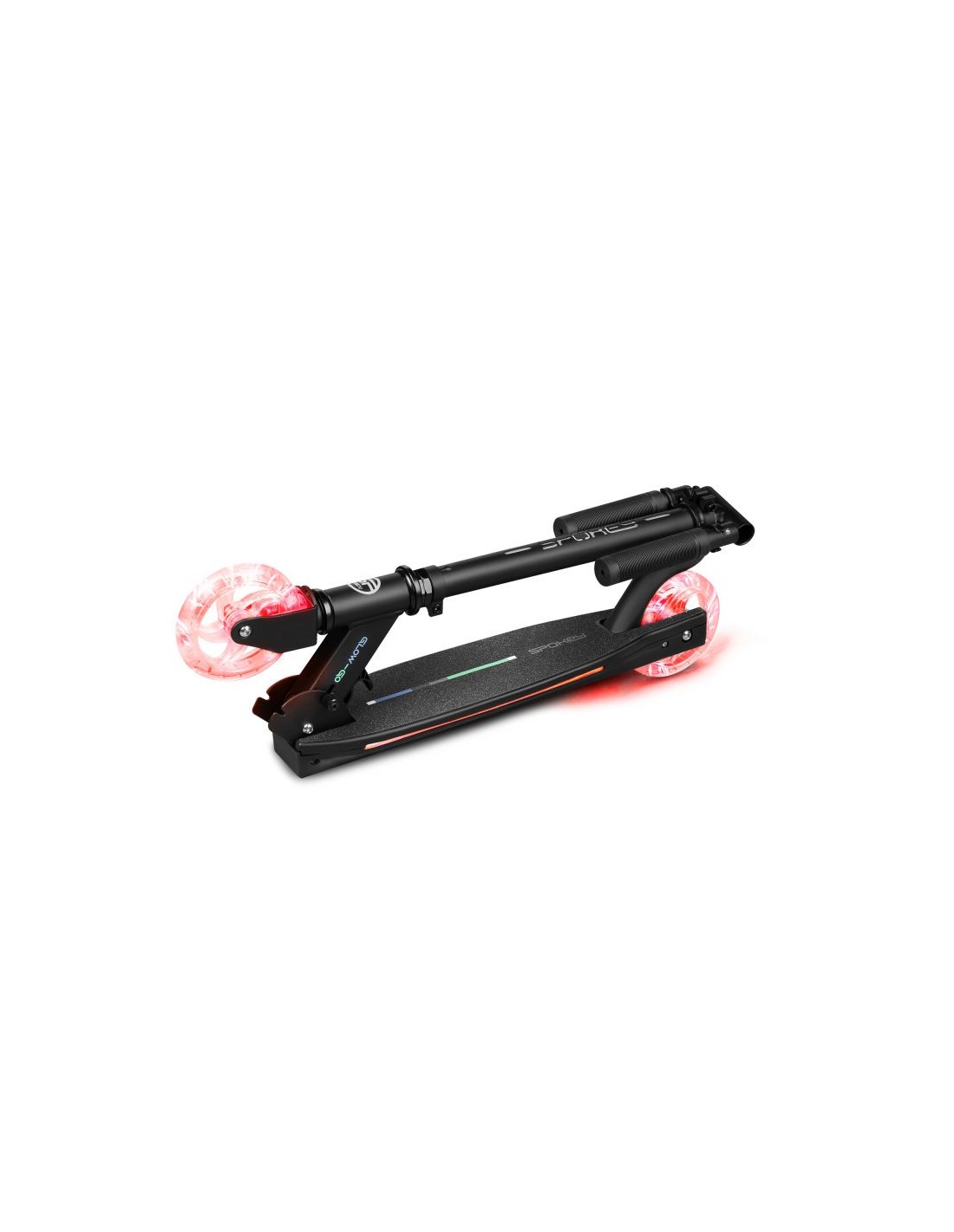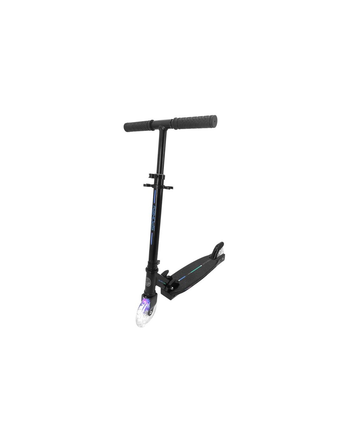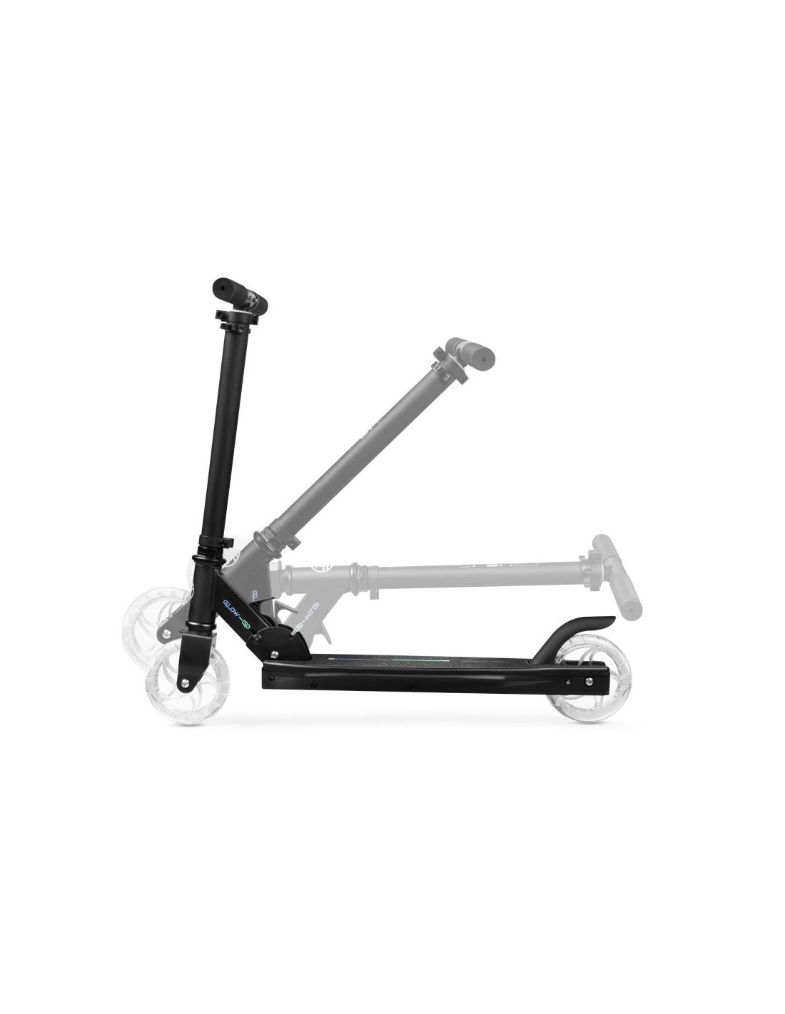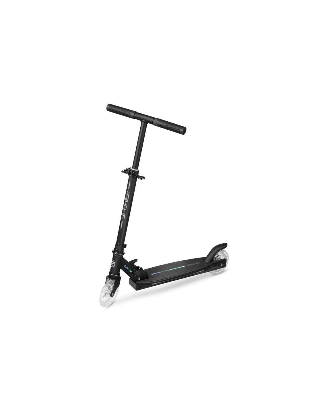 Properties: A lightweight, foldable youth scooter with eye-catching LED lighting The Glow Go scooter is the perfect choice for children and teenagers, combining functionality with aesthetics. Thanks to the built-in LED lighting and illuminated wheels, it not only provides great fun and a spectacular effect, but also visibility on the road. Its low weight and foldability make it extremely convenient to transport and store. Key features: LED backlight: color changing for an eye-catching ride. Transparent, illuminated wheels: 120 mm diameter for smooth movement and better visibility after dark. Anti-slip deck: stability while riding. Adjustable handlebar height: three levels (66-71-76 cm) adapted to the user's height. Foot brake: easy and safe stopping. Compact: easy folding and lightweight design (2.95 kg). The Glow Go scooter is a perfect option for young users looking for unique equipment for recreational riding. The Glow Go stands out from other models in its class thanks to its LED backlight with the ability to change the light color while riding, and transparent, glowing wheels that illuminate the route after dark. The design of the scooter is light and at the same time durable. The non-slip deck ensures stability, and the adjustable handlebar allows for adjustments to the individual needs of a child or teenager, allowing the Glow Go to grow with its owner. Thanks to its low weight and foldable design, the scooter is easy to carry and store, making it an ideal solution for both everyday fun and trips. Why choose the Glow Go scooter? Eye-catching design: LED lighting and illuminated wheels attract attention and add to the driving fun. Lightness and mobility: compact dimensions and low weight make it easy to transport and store. Safety and comfort: the non-slip deck and rubber handles increase stability and comfort while riding, and LED lights increase the user's visibility after dark. Height adjustment: adjustable handlebar allows use by children and teenagers of different heights. Ease of use: simple folding system and foot brake for greater convenience. Technical data: Material: plastic, steel Wheels: PC, 120 mm, transparent, illuminated Scooter dimensions: 76 x 66 x 33 cm Dimensions when folded: 66 x 12 x 24 cm Adjustable handlebar height: 66-71-76 cm Footbrake Weight: 2.95 kg Maximum user weight: 50 kg Standard: EN-71 Recommended for: recreational riding Skill level: beginner, intermediate Safety notes: Personal protective equipment must be worn. Not suitable for children weighing more than 100 kg. To be used under adult supervision. Do not use in traffic. Instructions for use