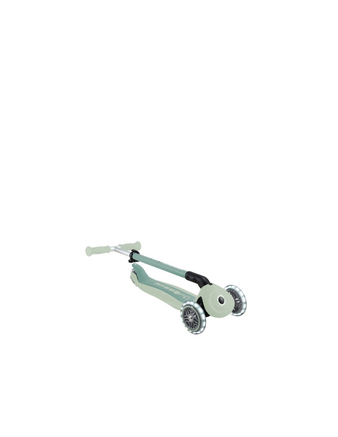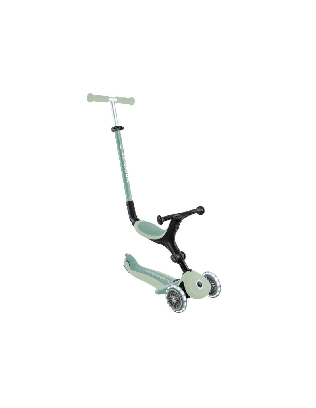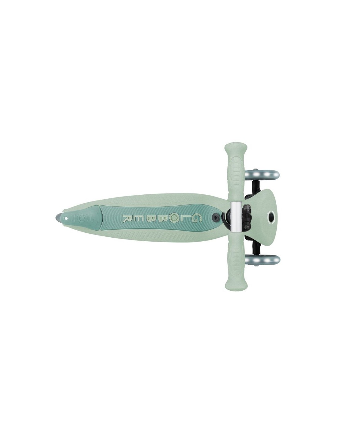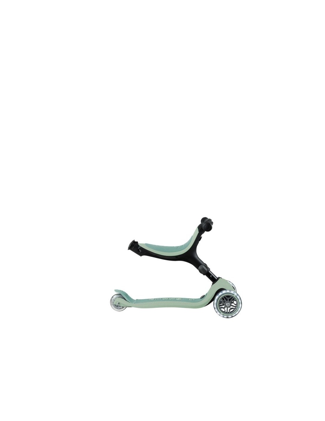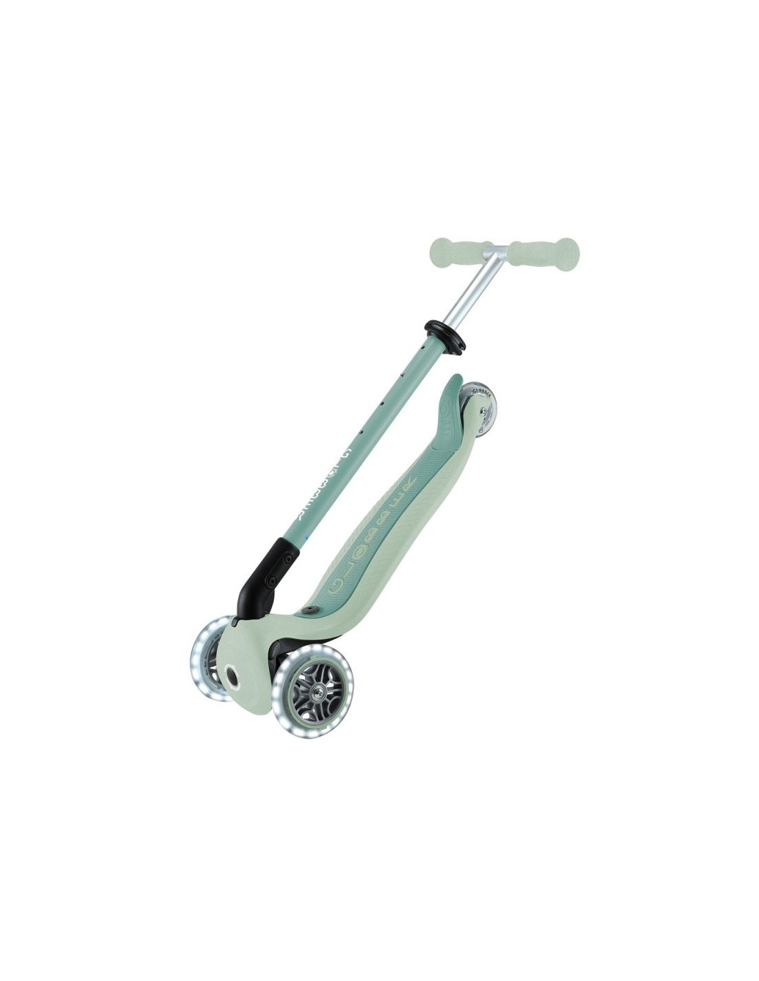 GO • UP Active Lights ECOLOGIC An eco-friendly all-in-one scooter with a seat for small children, made from 100% recycled plastic and organic wheat straw*, and equipped with light-up wheels. The vehicle offers 3 modes: ride-on car with handle for parents (15 months - 3 years) tricycle - balance bike (15 months - 3 years) scooter with 4-level height adjustment and foldable structure (3-9+ years) Simple, tool-free and intuitive transformation between modes using a solidly designed combination of buttons and knobs. The patented folding system allows for convenient transport and storage of the vehicle. The patented steering lock system allows for straight-line driving only. This option is useful for beginners; once your child has mastered balance, you can restore full control with a single button. The vehicle is equipped with light-up wheels that flash white while driving and do not require the use of any batteries. Made from 100% recycled plastic to the global GRS standard and biodegradable wheat straw* Eco-friendly packaging made from recycled paper and is plastic-free. GO • UP Active Lights ECOLOGIC is available in four pastel colors inspired by nature: pistachio, peach, blueberry and bilberry. GO • UP Active Lights ECOLOGIC is made of 100% GRS plastic and biodegradable wheat straw*. GRS is an international protocol that verifies the recycled content of end products. Using GRS plastic saves tons of waste from landfills and mitigates the environmental impact of production. Wheat straw is a 100% renewable, biodegradable bioplastic derived from agricultural waste. Using wheat straw diverts waste and helps decompose other plastics. The plastic maintains its structural integrity and is 100% child-safe. Choose Globber. Choose greener! 100% tool-free design 100% tool-free design allows you to easily switch between different modes without the need for tools or screws - GO • UP Active Lights ECOLOGIC has spring-loaded buttons and knobs that allow for a smooth transition from ride-on to scooter mode. Adjustable seat and handlebar for maximum comfort The eco-friendly GO • UP Active Lights ECOLOGIC scooter with a seat has adjustment functions for maximum comfort: TPR saddle with 2-stage height adjustment, adjustable using a side knob without tools 4-step steering wheel adjustment, so the vehicle "grows" with the child. Powerful brake The extra long and wide composite rear brake ensures effective braking. Additional footrest The removable footrest provides additional comfort and safety when riding in ride-on mode. It allows the feet to rest securely while the parent controls the vehicle. Solid platform and durable wheels with LED diodes GO • UP Active Lights ECOLOGIC is equipped with a low, metal-reinforced structure that can withstand up to 50 kg and a wide, non-slip composite deck for a safe scooter ride. High-quality, high-rebound, 121mm diameter PU-molded front wheels mounted on ABEC 5 bearings and an 80mm diameter PU-molded rear wheel provide a smooth ride. The front wheels are equipped with LED lights that flash white while riding. Batteries are not required for the wheels. Patented steering lock system The GO • UP Active Lights ECOLOGIC features Globber's patented steering lock system, which locks the front wheels of the scooter to only move forward and backward, so kids gain confidence while riding their scooter while developing their balance skills. To enter full steering mode and enable balance steering, simply release the handlebar lock button located at the front of the scooter. Patented folding system Effortlessly carry and store your GO • UP Active Lights ECOLOGIC in a compact form! Featuring a patented folding system, easily fold this 3-wheel scooter into stroller mode to carry it around or roll it after a day of scootering fun. LIBRA DIMENSIONS (height / length / width) SEAT HEIGHT stroller 3.86 kg 77.5- 95.5 x 60.02 - 67 x 28 cm 25.5 - 29 cm bike - ride-on 3.23 kg 37 - 41 x 57.5 x 26.5 cm scooter 2.72 kg 67.5 - 82.5 x 57.5 x 28 cm This eco-friendly all-in-one scooter with a seat converts into a ride-on bike, a walker, and a toddler scooter. The ride-on and walker modes are designed for toddlers aged 15-36 months, while the scooter mode is suitable for children aged 3-9+. Made from 100% GRS plastic and biodegradable wheat straw* as a sustainable choice for families. 100% tool-free design allows you to easily switch between different modes without the need for tools or screws - the GO • UP Active Lights ECOLOGIC has spring-loaded buttons and knobs that seamlessly transition from ride-on to scooter mode. The patented folding system allows for convenient folding and offers a stroller mode. Thanks to the easy-to-use side button, you can easily carry and store the GO•UP Active Lights ECOLOGIC in a small space. Globber's patented steering lock system prevents the front wheels from turning, helping children learn and master balance. Adjustable Scooter with Seat: 2-position TPR seat height adjustment (25.5cm or 29cm from the ground), adjusted by a tool-free knob on the side and 4-position T-bar height adjustment (67.5cm, 72.5cm, 77.5cm, 82.5cm from the ground) for a comfortable ride. The low-profile, metal-reinforced structure supports up to 50 kg and features a wide, non-slip composite deck for a safe ride. A long, wide, removable footrest provides added comfort and safety when using the scooter. High-quality, high-rebound 121mm PU cast front wheels mounted on ABEC 5 bearings and a single 80mm PU cast rear wheel provide a smooth ride. An extra-long and wide composite rear brake ensures effective braking and extends wheel life. (* in all applicable elements)