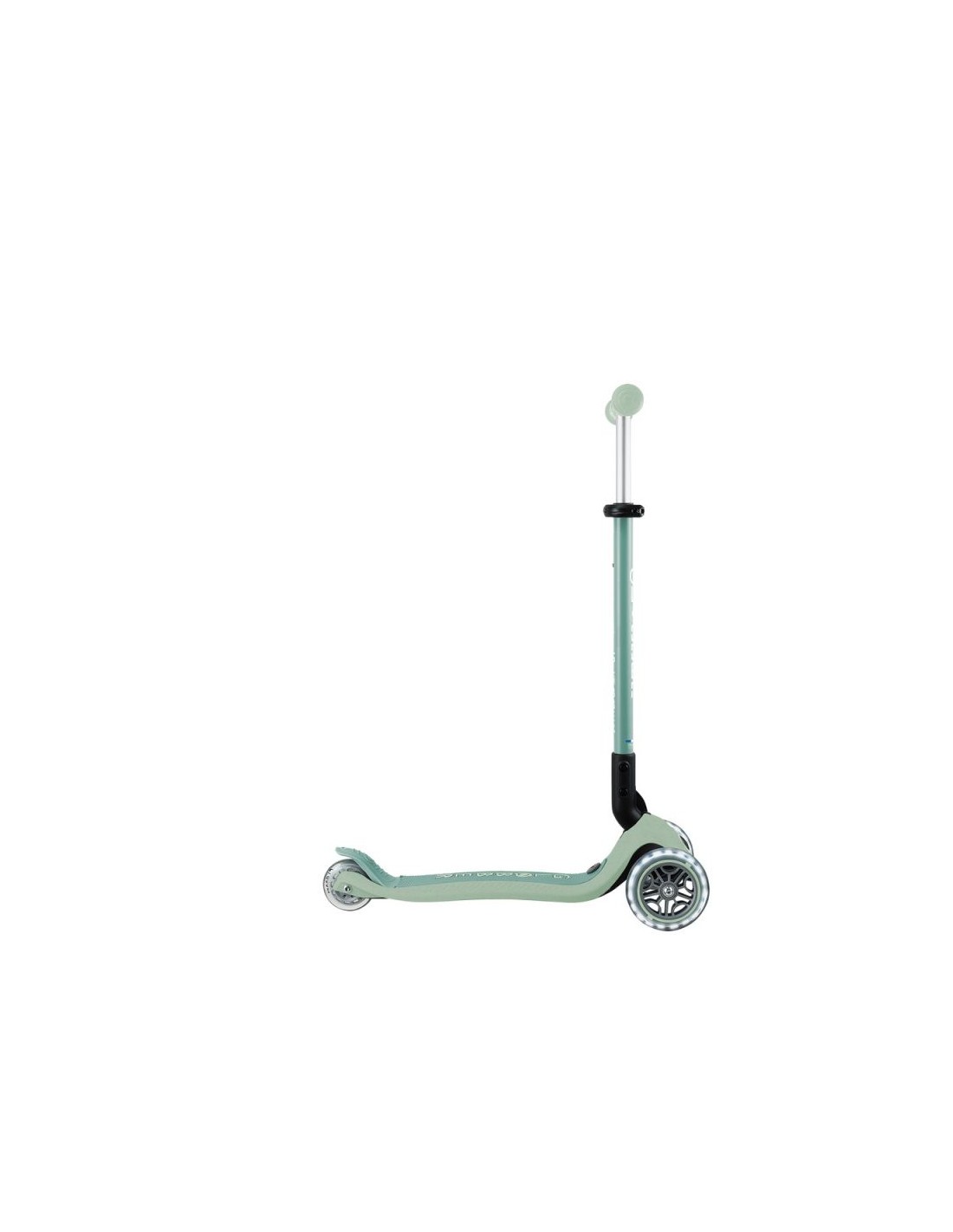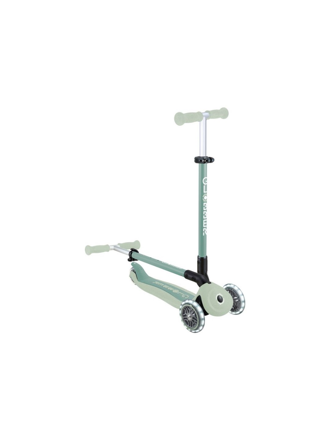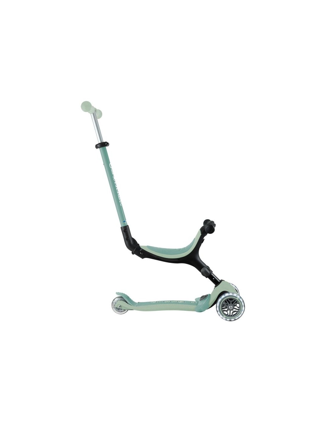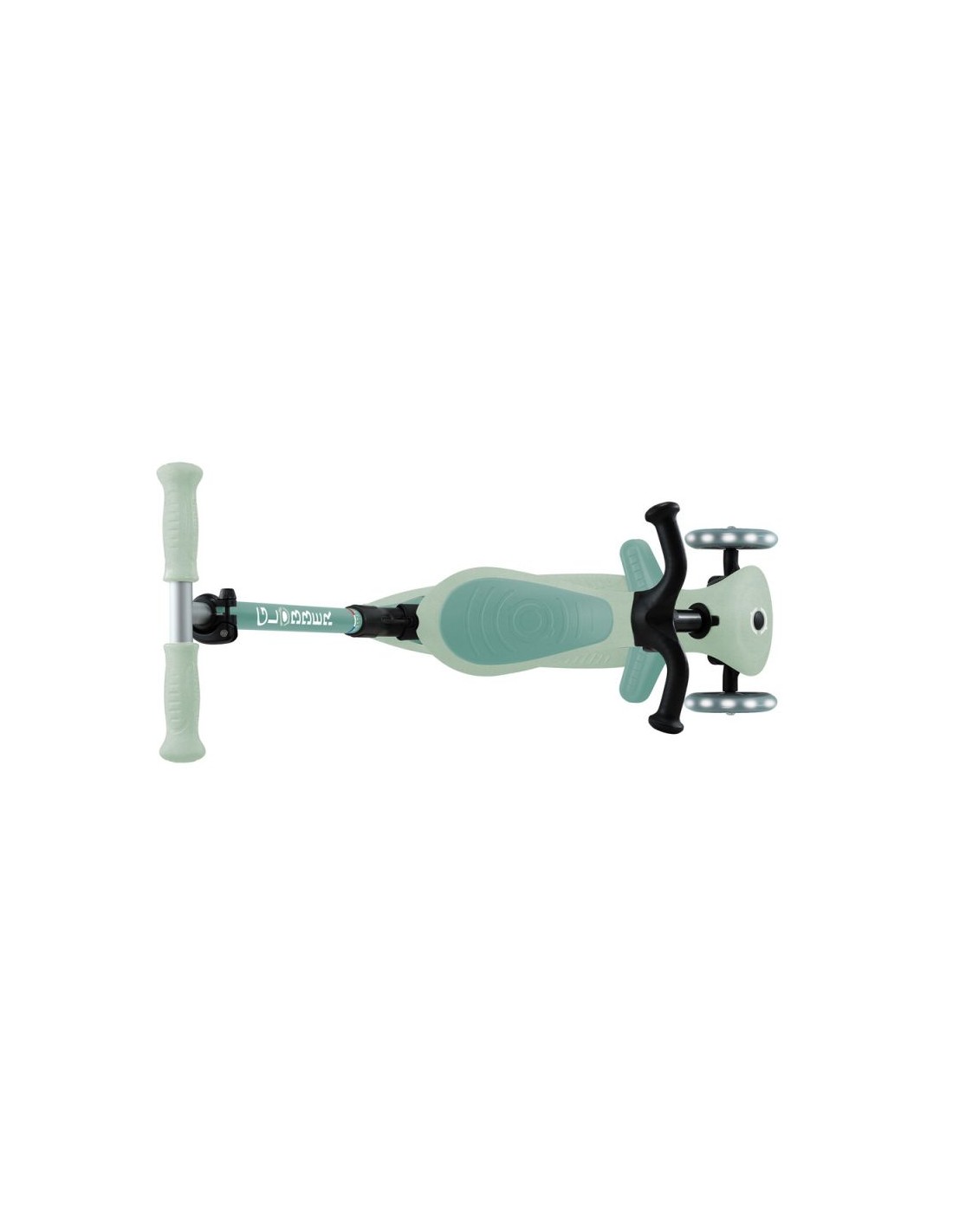 GO • UP Active Lights ECOLOGIC An eco-friendly all-in-one scooter with a seat for small children, made from 100% recycled plastic and organic wheat straw*, and equipped with light-up wheels. The vehicle offers 3 modes: ride-on car with handle for parents (15 months - 3 years) tricycle - balance bike (15 months - 3 years) scooter with 4-level height adjustment and foldable structure (3-9+ years) Simple, tool-free and intuitive transformation between modes using a solidly designed combination of buttons and knobs. The patented folding system allows for convenient transport and storage of the vehicle. The patented steering lock system allows for straight-line driving only. This option is useful for beginners; once your child has mastered balance, you can restore full control with a single button. The vehicle is equipped with light-up wheels that flash white while driving and do not require the use of any batteries. Made from 100% recycled plastic to the global GRS standard and biodegradable wheat straw* Eco-friendly packaging made from recycled paper and is plastic-free. GO • UP Active Lights ECOLOGIC is available in four pastel colors inspired by nature: pistachio, peach, blueberry and bilberry. GO • UP Active Lights ECOLOGIC is made of 100% GRS plastic and biodegradable wheat straw*. GRS is an international protocol that verifies the recycled content of end products. Using GRS plastic saves tons of waste from landfills and mitigates the environmental impact of production. Wheat straw is a 100% renewable, biodegradable bioplastic derived from agricultural waste. Using wheat straw diverts waste and helps decompose other plastics. The plastic maintains its structural integrity and is 100% child-safe. Choose Globber. Choose greener! 100% tool-free design 100% tool-free design allows you to easily switch between different modes without the need for tools or screws - GO • UP Active Lights ECOLOGIC has spring-loaded buttons and knobs that allow for a smooth transition from ride-on to scooter mode. Adjustable seat and handlebar for maximum comfort The eco-friendly GO • UP Active Lights ECOLOGIC scooter with a seat has adjustment functions for maximum comfort: TPR saddle with 2-stage height adjustment, adjustable using a side knob without tools 4-step steering wheel adjustment, so the vehicle "grows" with the child. Powerful brake The extra long and wide composite rear brake ensures effective braking. Additional footrest The removable footrest provides additional comfort and safety when riding in ride-on mode. It allows the feet to rest securely while the parent controls the vehicle. Solid platform and durable wheels with LED diodes GO • UP Active Lights ECOLOGIC is equipped with a low, metal-reinforced structure that can withstand up to 50 kg and a wide, non-slip composite deck for a safe scooter ride. High-quality, high-rebound, 121mm diameter PU-molded front wheels mounted on ABEC 5 bearings and an 80mm diameter PU-molded rear wheel provide a smooth ride. The front wheels are equipped with LED lights that flash white while riding. Batteries are not required for the wheels. Patented steering lock system The GO • UP Active Lights ECOLOGIC features Globber's patented steering lock system, which locks the front wheels of the scooter to only move forward and backward, so kids gain confidence while riding their scooter while developing their balance skills. To enter full steering mode and enable balance steering, simply release the handlebar lock button located at the front of the scooter. Patented folding system Effortlessly carry and store your GO • UP Active Lights ECOLOGIC in a compact form! Featuring a patented folding system, easily fold this 3-wheel scooter into stroller mode to carry it around or roll it after a day of scootering fun. LIBRA DIMENSIONS (height / length / width) SEAT HEIGHT stroller 3.86 kg 77.5- 95.5 x 60.02 - 67 x 28 cm 25.5 - 29 cm bike - ride-on 3.23 kg 37 - 41 x 57.5 x 26.5 cm scooter 2.72 kg 67.5 - 82.5 x 57.5 x 28 cm This eco-friendly all-in-one scooter with a seat converts into a ride-on bike, a walker, and a toddler scooter. The ride-on and walker modes are designed for toddlers aged 15-36 months, while the scooter mode is suitable for children aged 3-9+. Made from 100% GRS plastic and biodegradable wheat straw* as a sustainable choice for families. 100% tool-free design allows you to easily switch between different modes without the need for tools or screws - the GO • UP Active Lights ECOLOGIC has spring-loaded buttons and knobs that seamlessly transition from ride-on to scooter mode. The patented folding system allows for convenient folding and offers a stroller mode. Thanks to the easy-to-use side button, you can easily carry and store the GO•UP Active Lights ECOLOGIC in a small space. Globber's patented steering lock system prevents the front wheels from turning, helping children learn and master balance. Adjustable Scooter with Seat: 2-position TPR seat height adjustment (25.5cm or 29cm from the ground), adjusted by a tool-free knob on the side and 4-position T-bar height adjustment (67.5cm, 72.5cm, 77.5cm, 82.5cm from the ground) for a comfortable ride. The low-profile, metal-reinforced structure supports up to 50 kg and features a wide, non-slip composite deck for a safe ride. A long, wide, removable footrest provides added comfort and safety when using the scooter. High-quality, high-rebound 121mm PU cast front wheels mounted on ABEC 5 bearings and a single 80mm PU cast rear wheel provide a smooth ride. An extra-long and wide composite rear brake ensures effective braking and extends wheel life. (* in all applicable elements)