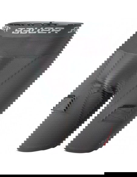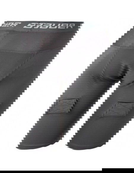 Profile: Compression shorts with unique fit system Sanitized® technology Directly integrated into the pad during the manufacturing process for optimal performance throughout the life of the Jock Prevents the growth of odor-causing bacteria and ensures long-lasting freshness LockJockR122: Patented system that securely locks the cup in place Reinforced 3-D hook-and-loop fasteners Mesh inserts for additional air circulation Supplied with an ergonomic, molded MuellerR122 cup Flatlock seams reduce chafing Logo on the waistband with silicone grip Keeps the Jock in place Bauer logo on the left thigh and waistband Compression Fit Size S: Waist: 74 - 76 cm Height: 165 - 175cm Size M: Waist: 79 - 84 cm Height: 175 - 180 cm Size L: Waist: 86 - 89 cm Height: 180 - 185cm