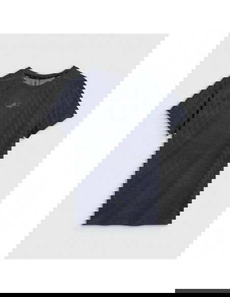 Women's cycling jersey - comfort, functionality and safety for every route This women's cycling jersey was designed with cycling enthusiasts in mind—both recreational and competitive. Made of durable synthetic material , it offers lightweight , breathable performance , and rapid moisture wicking thanks to 4FDry technology . Perfect for short and long distances. The regular cut comfortably fits the body, while the standard hip length and extended back with a non-slip finish prevent the material from riding up when leaning over. Interlock fabric with a smooth, soft structure on both sides ensures comfort and durability. A stylish allover print adds a modern touch, while a reflective element on the back increases visibility after dark, improving road safety . PRODUCT FEATURES: Women's cycling jersey - perfect for cycling Size range: XS–XL – fits a variety of body shapes Regular fit – comfortable fit without restricting movement Standard hip length – a universal, everyday style Synthetic material – durable, quick-drying and easy to care for Interlock knit fabric – smooth, soft, durable structure on both sides 4FDry technology – effective moisture wicking and dryness during exercise Perforated structure – supports ventilation and cooling of the body Stylish allover print – pattern on the entire surface of the material Stand-up collar – sporty look and wind protection Short sleeves – comfort and breathability while riding Reflective element on the back – increased visibility after dark Slips on over the head – quick and easy to put on Why is it worth it? provides complete freedom of movement , keeps you dry even during intense training , protects against hypothermia thanks to breathable technology , increases the level of safety thanks to reflective details . Choose a women's cycling jersey that combines