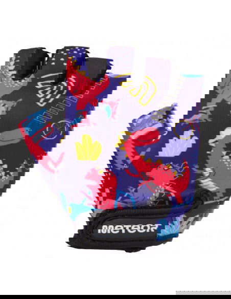 - Meteor cycling gloves protect the most sensitive area of the hand. The inner part is made of delicate, soft eco-leather. The material is supplemented with foam inserts that soften shocks. The outer part is made of soft material with a colorful print.