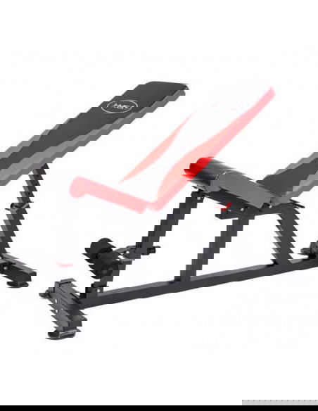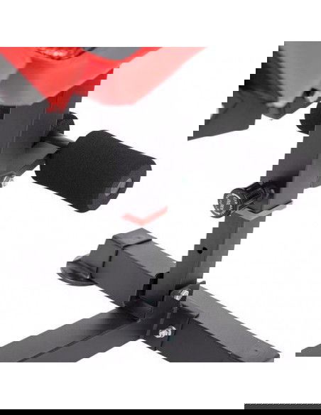 The device provides excellent stability during exercise. Comfort is guaranteed by a durable sponge and a modern upholstery fabric with a carbon pattern and increased durability. Specially profiled construction stabilizes the user's position. The bench has full backrest adjustment, which ensures varied training.