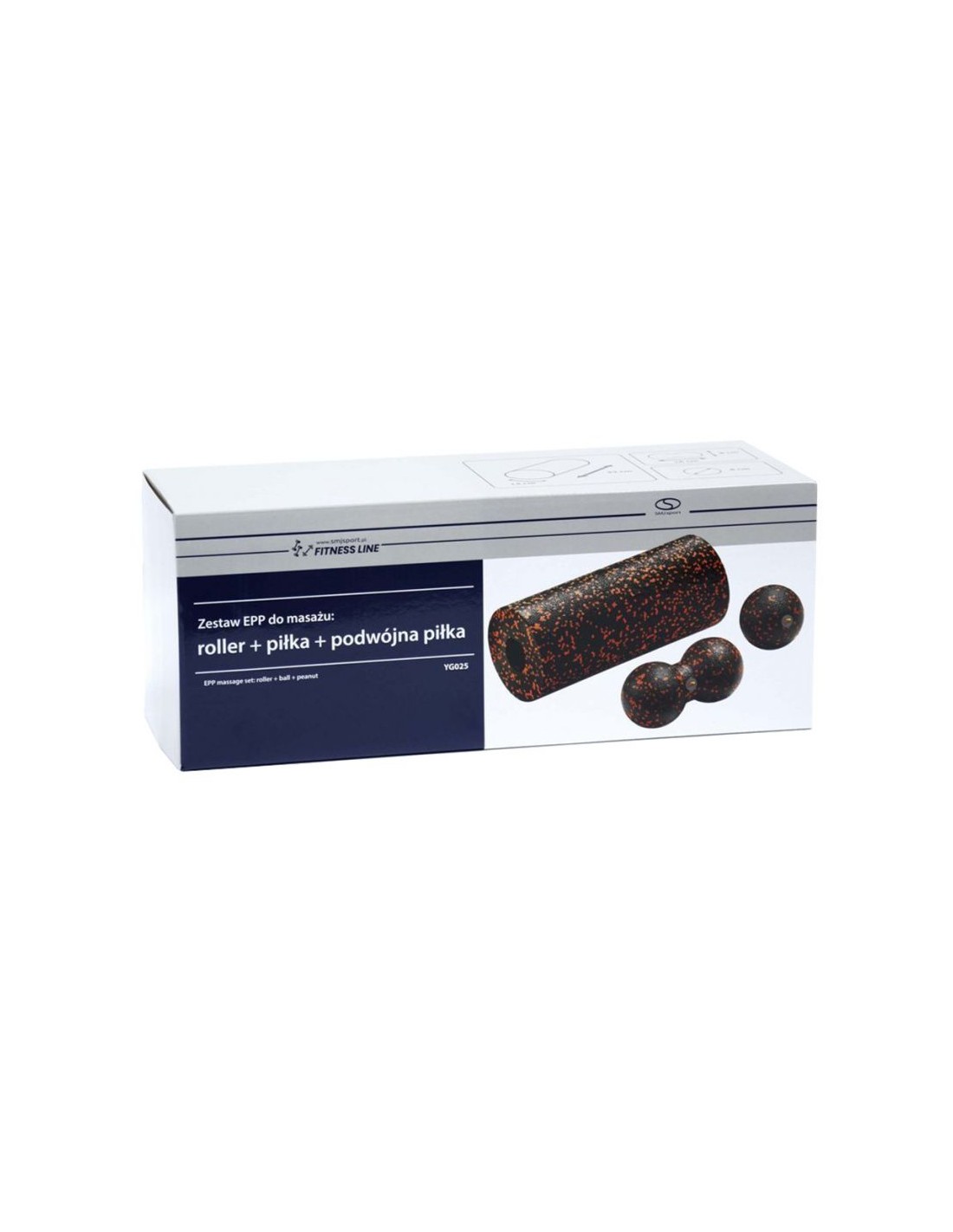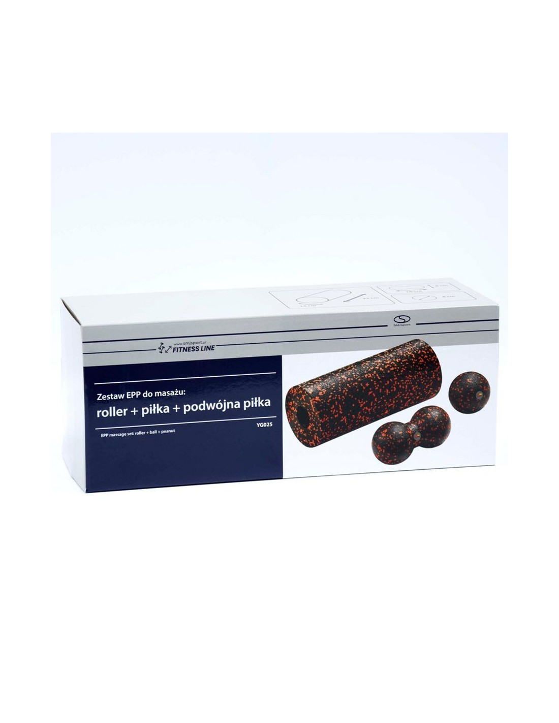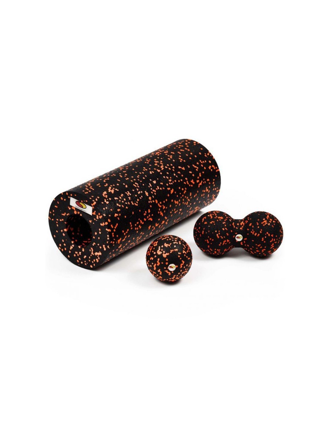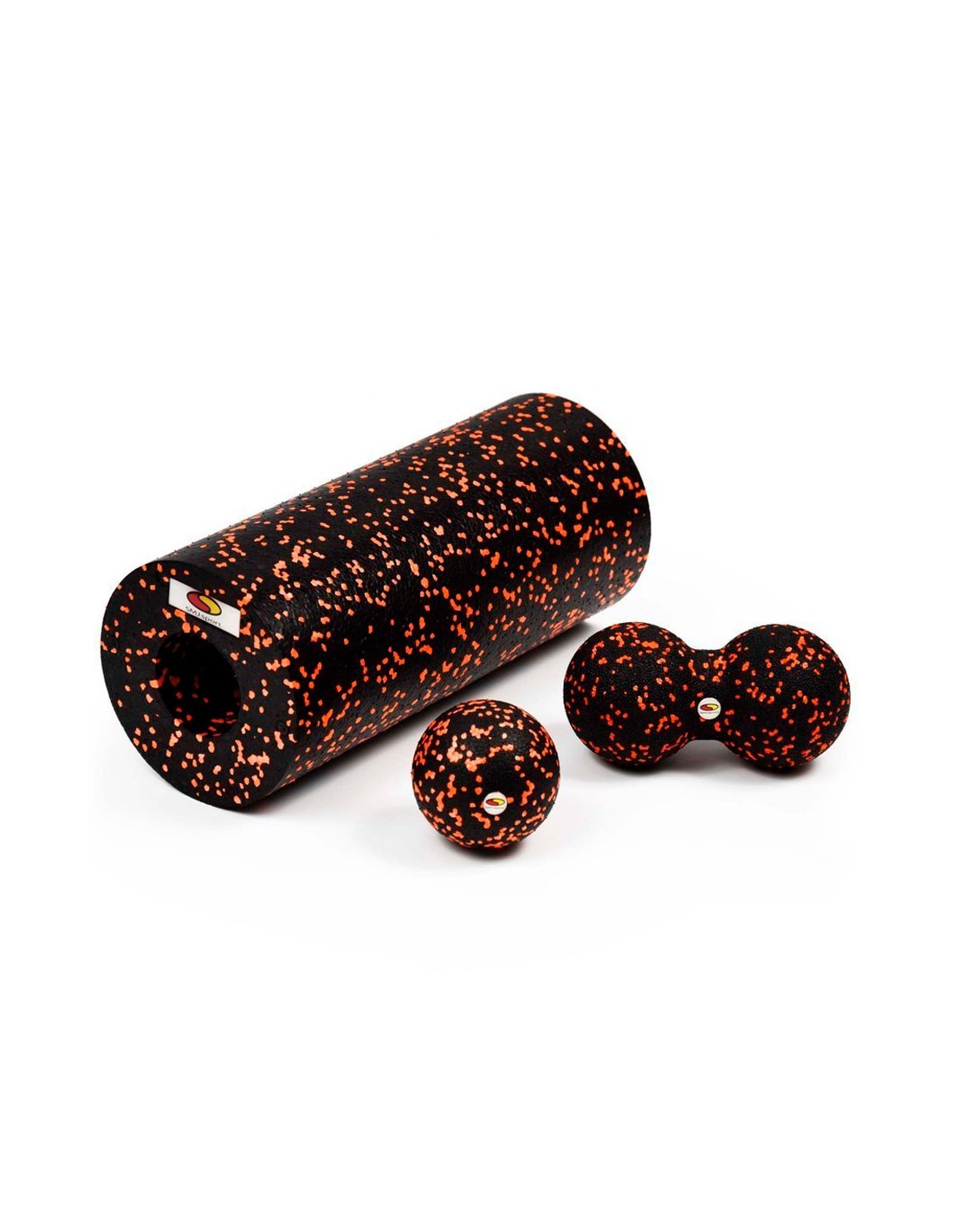 - the set includes a roller for massaging larger surfaces, a selective massage ball and a double ball for massaging parallel muscles