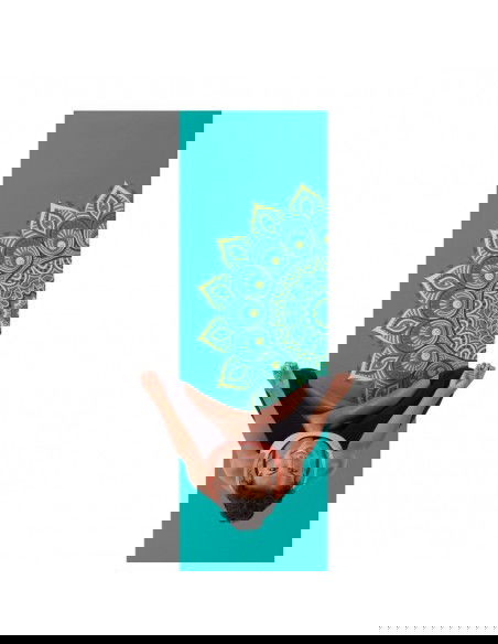Yoga mat in azure green. It has a thickness of 6mm, which provides additional cushioning. It provides support for limbs during more difficult and complicated exercises. The mat is made of non-slip material with good grip, which makes it easier to stay in place. The mat is made of PVC, a harmless plastic that is free of latex and phthalates. Works great in the studio as well as during meditation. It is easy to clean and has a lifetime warranty.