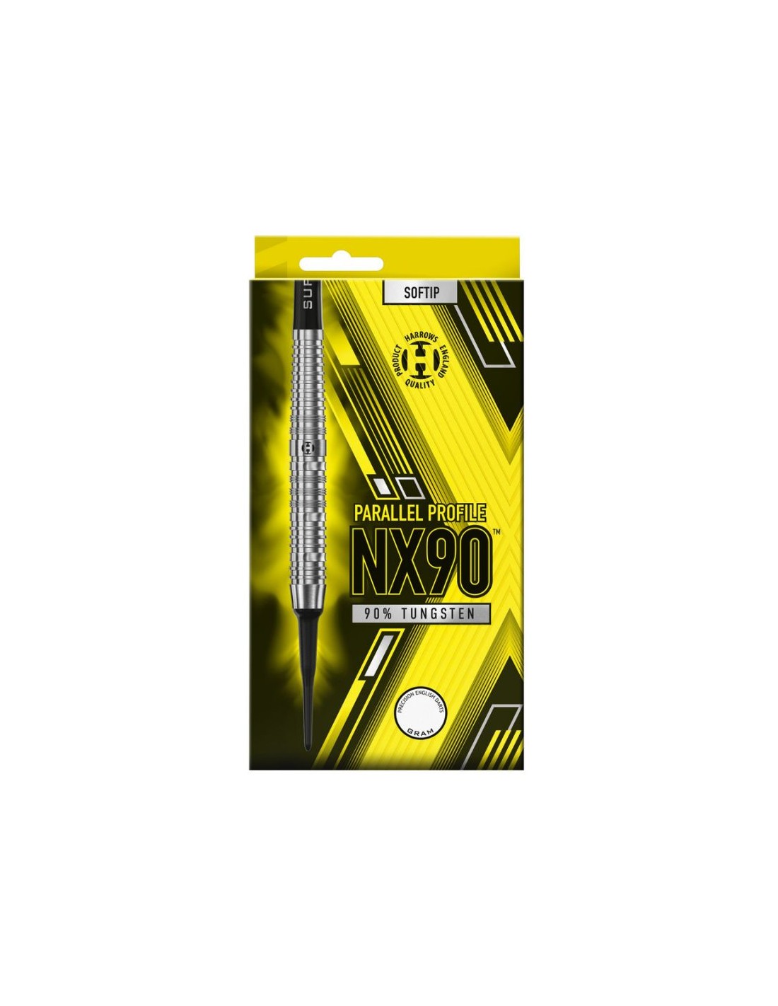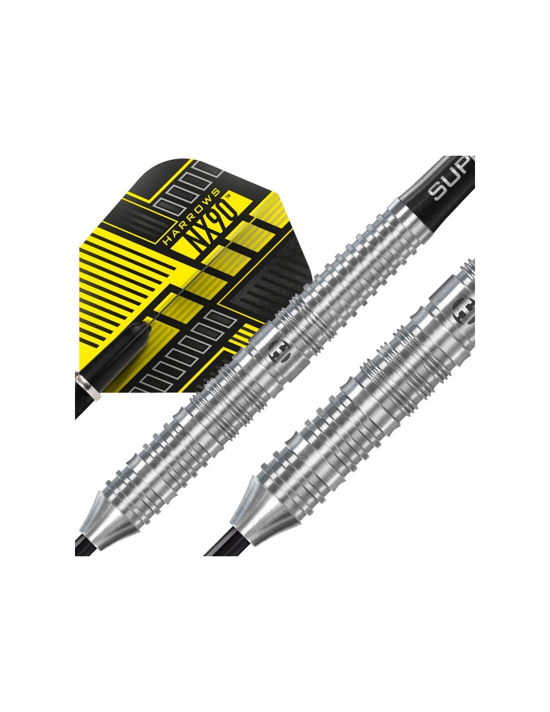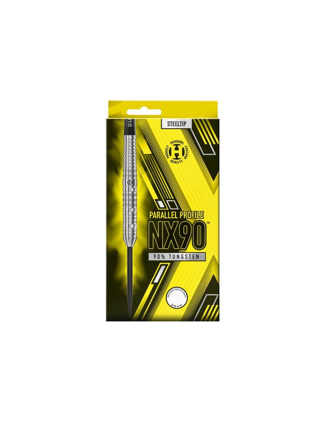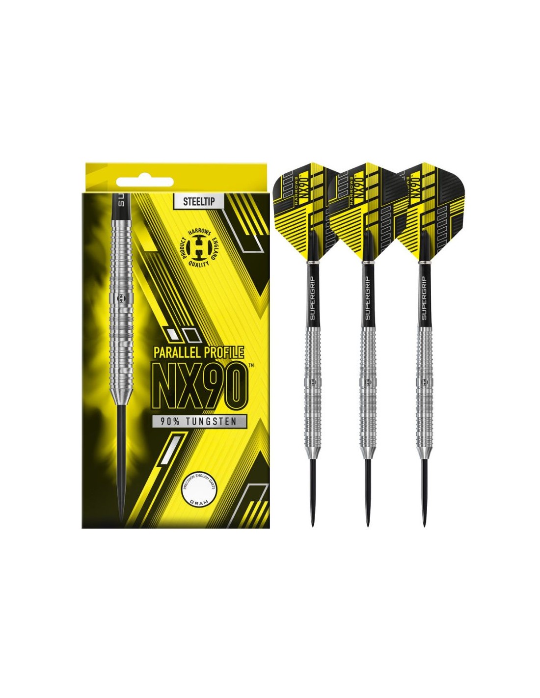 The Harrows NX90 Parallel 90 steeltip darts offer precision and accuracy for competitive dart players.