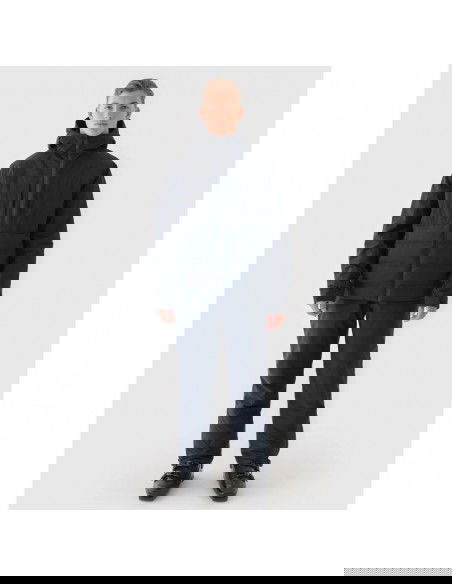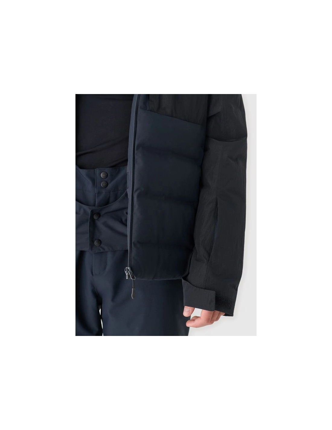 This men's ski jacket with a membrane features an integrated hood with adjustable depth. A high collar covers the neck, providing additional protection against cold and wind. The sleeves are finished with Velcro-adjustable cuffs. Ventilation is located under the arms with a one-way zipper concealed by a placket, allowing you to regulate airflow. There are two zippered pockets on the sides. Additionally, there are two zippered chest pockets. A small zippered ski pass pocket on the left arm is perfect for storing a ski pass or other small items. This men's ski jacket fastens with a one-way, waterproof main zipper with an internal storm flap to prevent cold from entering the jacket. The hem can be adjusted using a tunnel drawcord with toggles. An integrated powder skirt with press-stud adjustments completes the look . Material reinforcements made of tear-resistant rip-stop fabric on the sleeves and chest. cut: regular, which comfortably fits the figure size range: S-3XL standard cut reaching to the hips a jacket designed for cool, cold days polyester, smooth lining the hydrophobic coating of the outer material limits the absorption of moisture taped critical seams in the hood and shoulders integrated hood with depth adjustment high collar cuffs with Velcro adjustment ventilation under the arms, adjustable with a one-way zipper hidden under the pleat 2 side pockets with zipper closure 2 chest pockets with zipper closure ski pass pocket on the left arm one-way, waterproof main zipper with an internal wind flap bottom circumference adjustment using a tunnel drawstring with stoppers integrated snow skirt with snap adjustment polyester insulation ensures optimal thermal comfort material reinforcements made of tear-resistant rip-stop fabric on the sleeves and chest NeoDry 10000/8000 membrane protects against moderate rain or snowfall PARAMETERS : Membrane: NeoDry 10000/8000 Water resistance: 10,000 mm H2O Breathability: 8,000 g/m2/24h Filling: polyester insulation The product ensures optimal moisture management during medium-intensity activities. Product intended for cold days. Medium-volume product. Main material: Polyester 100% Main material 2: Polyamide 100% Lining: Polyester 100% Filling: Polyester 100%