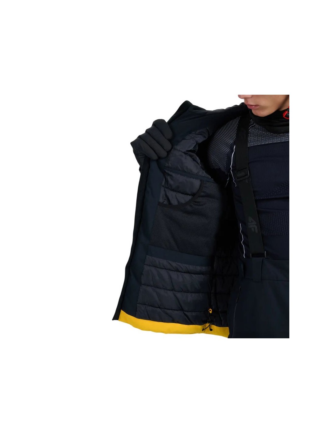 Men's ski jacket 4F M0787 orange 4FWAW25TTJAM0787 70S The 4F men's ski jacket is a model technologically prepared for low-intensity winter activities and everyday use. Technical data: Main material: 100% polyester Lining: 100% polyester Filling: synthetic down, 100% polyester Membrane waterproofness level: 5000 mm Water resistance: 5000 mm H2O Membrane breathability level: 3000 g/m2/24h NeoDry 5000/3000 membrane provides protection in light rain and supports breathability Sealed critical seams - tape on exposed areas protects against moisture Hydrophobic coating - limits water absorption of the fabric Light polyester insulation - guarantees warmth without load and is easy to care for Quilted lining - provides additional thermal comfort Integrated hood - protects the head from snow and wind One-way main zipper - simple and convenient fastening 2 side pockets with zippers - practical space for Small items · Ski pass pocket - easy access to your ski pass · Zippered inner pocket - a safe place for your phone or documents · Goggle pocket - convenient storage for ski accessories · Velcro cuffs - allow for adjustment and protection against cold · Adjustable bottom with stoppers - adjust the circumference to your individual needs · Reflective elements - improve visibility in low light conditions · Regular fit - fits comfortably on the body