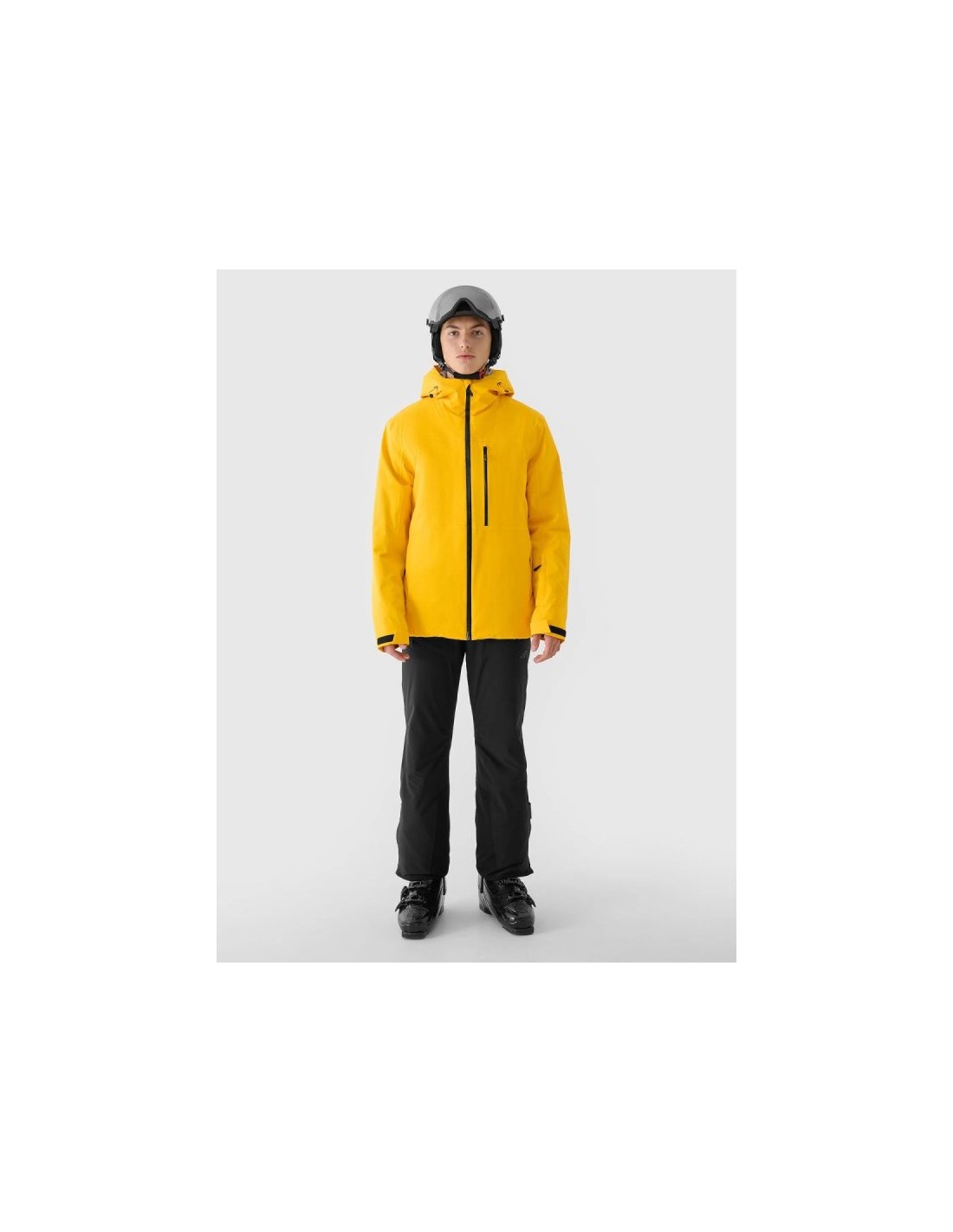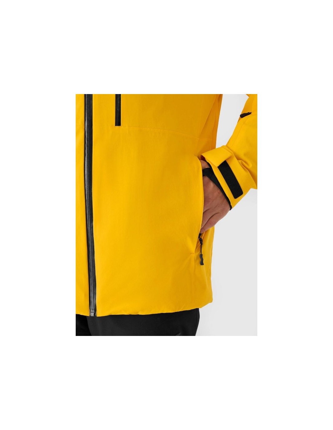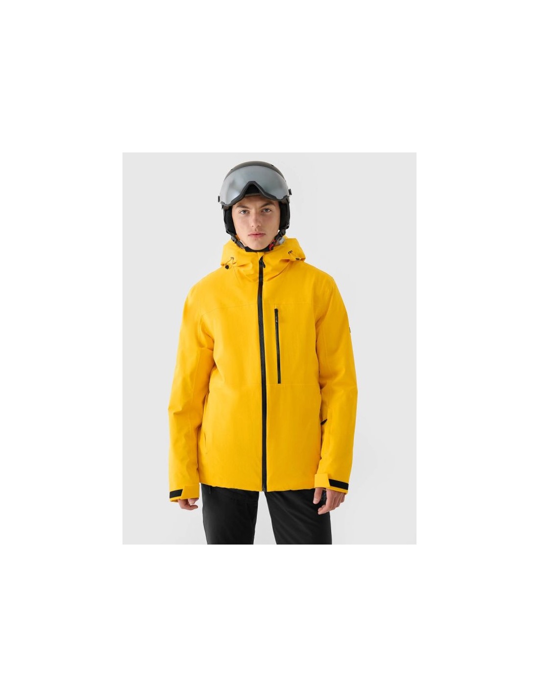 Men's 4F ski jacket with NeoDry 15000 membrane – reliable protection on the slopes The men's 4F ski jacket is technologically adapted to winter activities requiring a high level of protection during long hours on the slopes. Its regular fit and standard hip length ensure a comfortable fit and freedom of movement while skiing. The NeoDry 15000/10000 membrane effectively protects against strong winds, heavy snowfall, and rain, while also allowing for efficient moisture wicking. Lightweight 3M™ Thinsulate™ insulation guarantees high thermal comfort without excessive weight, even during intense activity. Advanced protection and technologies The outer material's hydrophobic impregnation limits moisture absorption, allowing water to run off the fabric's surface. Fully taped seams protect critical areas from water penetration. Reinforcements made of durable ripstop fabric increase the jacket's resistance to mechanical damage. Functional solutions for maximum comfort The jacket features an integrated hood with adjustable volume and depth, and a high collar to protect the neck from the wind. Adjustable Velcro cuffs, internal elastic cuffs with thumbholes, and underarm ventilation allow for precise adjustment to the weather. The practical pocket layout includes zipped hand pockets, a laminated zip chest pocket, a ski pass pocket on the arm, and internal pockets, including a mesh goggle pocket. An integrated powder skirt prevents snow from entering the jacket, and an internal SOS patch enhances safety in the mountains. Men's ski jacket - FEATURES regular cut – comfortable fit to the body size range: S–3XL standard hip length NeoDry 15000/10000 membrane hydrophobic impregnation of the outer material fully taped, waterproof seams lightweight 3M™ Thinsulate™ insulation integrated hood with volume and depth adjustment high collar for wind protection cuffs with Velcro adjustment inner cuffs made of elastic knit fabric with thumb hole zippered underarm ventilation 2 side pockets with zippers chest pocket with laminated zipper internal, open mesh goggle pocket inner zippered pocket ski pass pocket on the left arm waterproof main zipper with internal wind flap bottom circumference adjustment using a tunnel drawstring with stoppers integrated snow skirt adjustable with snaps internal patch with SOS instructions zonal reinforcements made of rip-stop fabric TECHNICAL PARAMETERS Membrane: NeoDry 15000 Water resistance: 15,000 mm H?O Breathability: 10,000 g/m²/24h Filling: 3M™ Thinsulate™ (100% polyester, 78% recycled)
