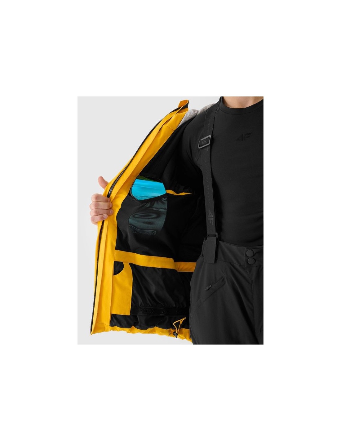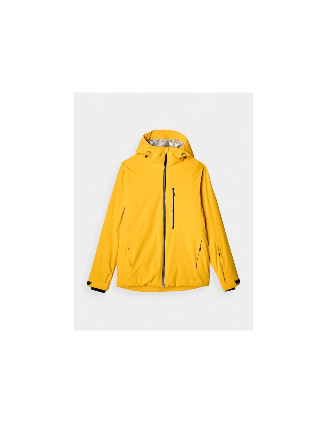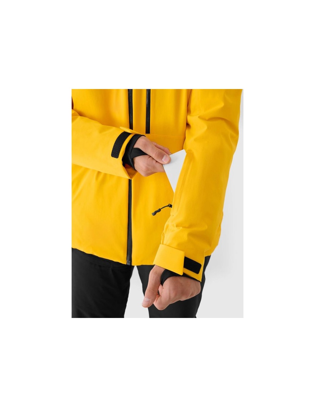 Men's 4F ski jacket with NeoDry 15000 membrane – reliable protection on the slopes The men's 4F ski jacket is technologically adapted to winter activities requiring a high level of protection during long hours on the slopes. Its regular fit and standard hip length ensure a comfortable fit and freedom of movement while skiing. The NeoDry 15000/10000 membrane effectively protects against strong winds, heavy snowfall, and rain, while also allowing for efficient moisture wicking. Lightweight 3M™ Thinsulate™ insulation guarantees high thermal comfort without excessive weight, even during intense activity. Advanced protection and technologies The outer material's hydrophobic impregnation limits moisture absorption, allowing water to run off the fabric's surface. Fully taped seams protect critical areas from water penetration. Reinforcements made of durable ripstop fabric increase the jacket's resistance to mechanical damage. Functional solutions for maximum comfort The jacket features an integrated hood with adjustable volume and depth, and a high collar to protect the neck from the wind. Adjustable Velcro cuffs, internal elastic cuffs with thumbholes, and underarm ventilation allow for precise adjustment to the weather. The practical pocket layout includes zipped hand pockets, a laminated zip chest pocket, a ski pass pocket on the arm, and internal pockets, including a mesh goggle pocket. An integrated powder skirt prevents snow from entering the jacket, and an internal SOS patch enhances safety in the mountains. Men's ski jacket - FEATURES regular cut – comfortable fit to the body size range: S–3XL standard hip length NeoDry 15000/10000 membrane hydrophobic impregnation of the outer material fully taped, waterproof seams lightweight 3M™ Thinsulate™ insulation integrated hood with volume and depth adjustment high collar for wind protection cuffs with Velcro adjustment inner cuffs made of elastic knit fabric with thumb hole zippered underarm ventilation 2 side pockets with zippers chest pocket with laminated zipper internal, open mesh goggle pocket inner zippered pocket ski pass pocket on the left arm waterproof main zipper with internal wind flap bottom circumference adjustment using a tunnel drawstring with stoppers integrated snow skirt adjustable with snaps internal patch with SOS instructions zonal reinforcements made of rip-stop fabric TECHNICAL PARAMETERS Membrane: NeoDry 15000 Water resistance: 15,000 mm H?O Breathability: 10,000 g/m²/24h Filling: 3M™ Thinsulate™ (100% polyester, 78% recycled)