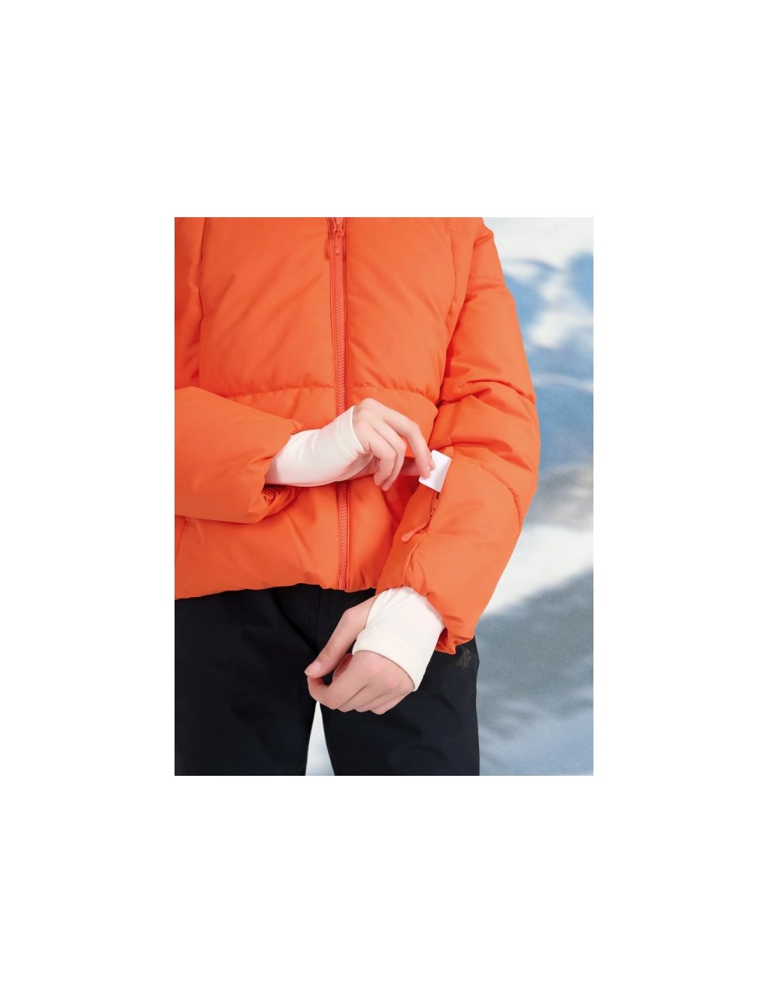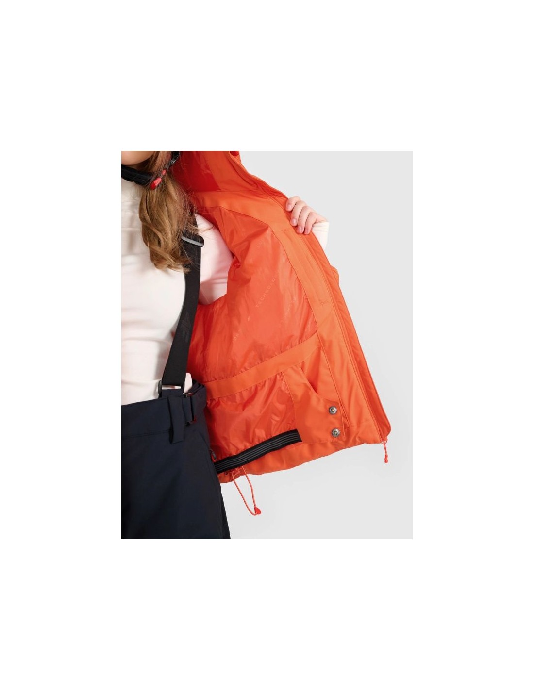 Women's ski jacket with NeoDry 5000 membrane - warmth and protection on the slopes This women's ski jacket with a NeoDry 5000 membrane is designed for thermal comfort and protection during winter activities on the slopes. Technical features effectively support skiing in variable weather conditions, ensuring comfort and freedom of movement. The NeoDry 5000/3000 membrane protects against light rain and snow while promoting the fabric's breathability. A hydrophobic impregnation coating limits moisture absorption, allowing water droplets to roll freely off the fabric's surface. Polyester insulation provides effective protection against the cold without adding bulk and is easy to care for. The integrated snow skirt keeps snow out even during intense riding. The jacket has a hood with an adjustable back that fits snugly and protects against the wind. There are three external zippered pockets (two side pockets and a ski pass pocket) and two internal pockets , including one with a zipper – perfect for goggles and small accessories. Elastic cuffs and an adjustable hem with a drawcord help retain heat and adjust the fit to your figure. A smooth lining enhances comfort, and the regular fit comfortably fits the body without restricting movement. NeoDry 5000/3000 membrane – protection against light precipitation and breathability hydrophobic coating that limits moisture absorption Polyester insulation provides warmth without being too heavy integrated snow belt hood with adjustment at the back 3 external zip pockets, including a ski pass pocket 2 inside pockets, one with a zipper cuffs with elastic band adjustable jacket bottom with tunnel drawstring smooth lining for increased comfort regular cut that adapts to the silhouette Hydrophobic impregnation It repels water and allows drops to run freely down the material. 4F NeoDry membrane It protects against rain and wind while wicking away moisture, which increases comfort in difficult conditions. Snow belt Effectively prevents snow and cold from getting inside the jacket.