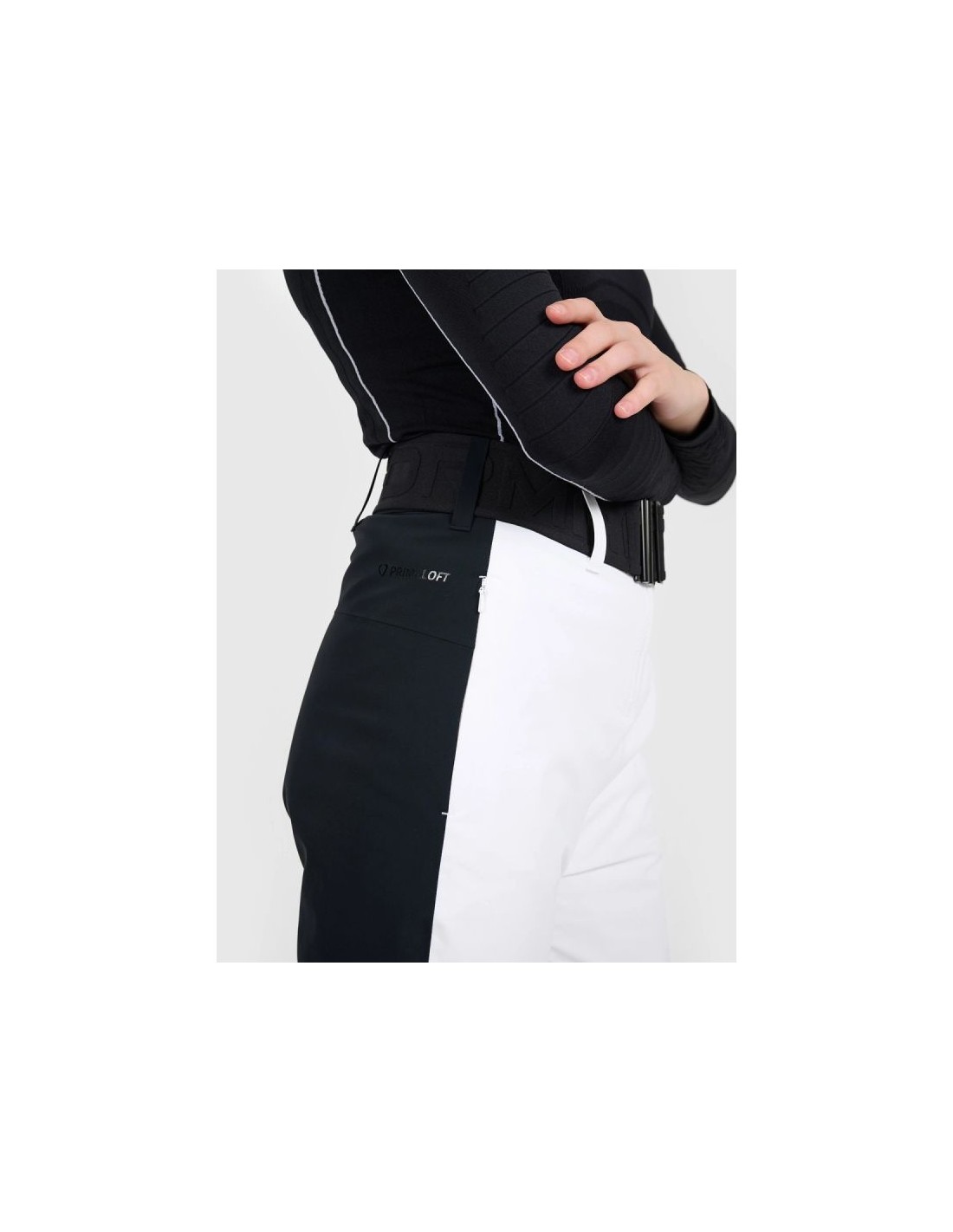 4F women's ski pants - full control and comfort in all conditions These women's 4F ski pants are designed for dynamic skiing and demanding conditions on the slopes. The advanced Dermizax 20,000/10,000 membrane effectively protects against rain, snow, and strong winds, while also providing high breathability. PrimaLoft Black Insulation keeps you warm even in low temperatures without adding bulk. The slim fit, high waist, and practical technical features allow you to focus solely on skiing—without compromising comfort, protection, or freedom of movement. Dermizax 20000/10000 membrane – high water resistance, breathability and flexibility Windproof material – effective protection against cold gusts Hydrophobic impregnation – limits moisture absorption PrimaLoft Black Insulation – warmth without excess bulk Fully taped seams – protection against water penetration Inner snow gaiters – a barrier against snow Waist adjustment with belt and buckle – perfect fit Belt fastened with a zipper, Velcro and snaps – stability while riding 2 side pockets with zippers – a safe place for small items Zippers at the bottom of the legs – easy to put on over ski boots Breathable mesh lining – better ventilation Slim fit, high waist, 7/8 length – modern fit and comfort