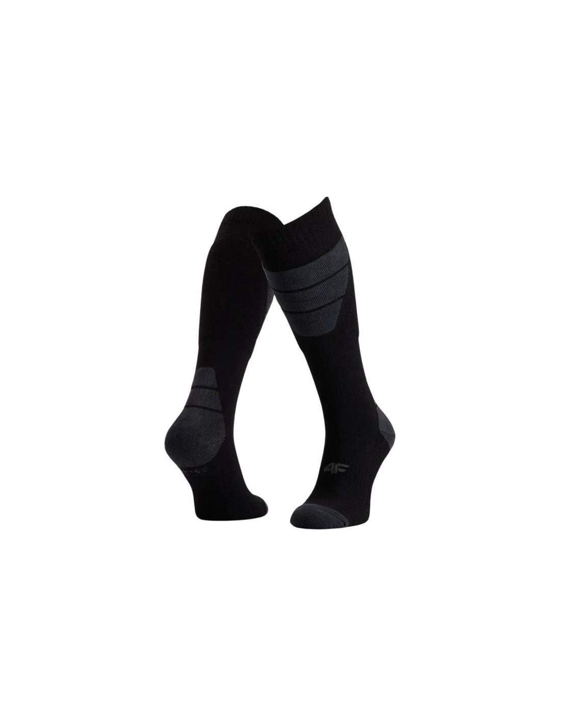 4F FNK F239 Women's Ski Socks, Deep Black 4FWMM00UFSOF239 20S 4F women's ski socks are designed to protect your feet during winter fun on the slopes. Made of elastic yarn. Reinforced heel and toe areas. Elastic upper cuff. Elastic cuff around the arch and ankle. Ventilation panels. Material: 55% acrylic, 30% cotton, 12% polyamide, 3% elastane