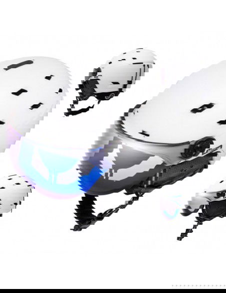 - The outer shell is made of PC material, which is characterized by high durability and resistance to external conditions. The built-in visor with S2 filter perfectly replaces goggles, providing a sun visor adapted to all weather conditions. The specially designed, inner shell reduces the force of impact and absorbs all shocks and vibrations caused by possible accidents. Thanks to its low weight, the helmet provides freedom of movement and better control and a wider field of vision during outdoor activities.