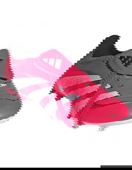 The Adidas Predator League FT FGMG ID1319 shoes are a fierce combination of style and performance. These shoes are designed for the ultimate predator on the field, featuring a sleek black and white colorway with bold red accents.