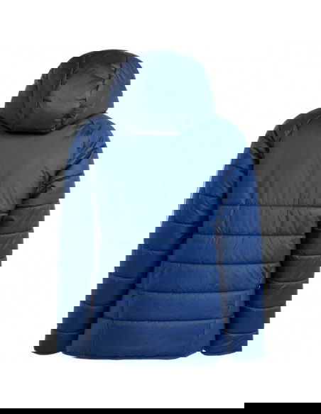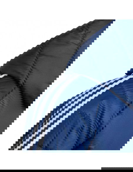 The adidas kids jacket from the Tiro football line is also perfect for everyday wear. Synthetic filling evenly distributed in horizontal, wide panels helps maintain optimal body temperature. Traditional cut. Full-length zipper. Fastened side pockets. Elastic cuffs and hem. Non-detachable hood without adjustment set on a high collar. Stripes on the sleeves. Subtle logo on the front.