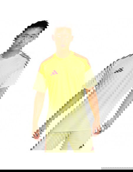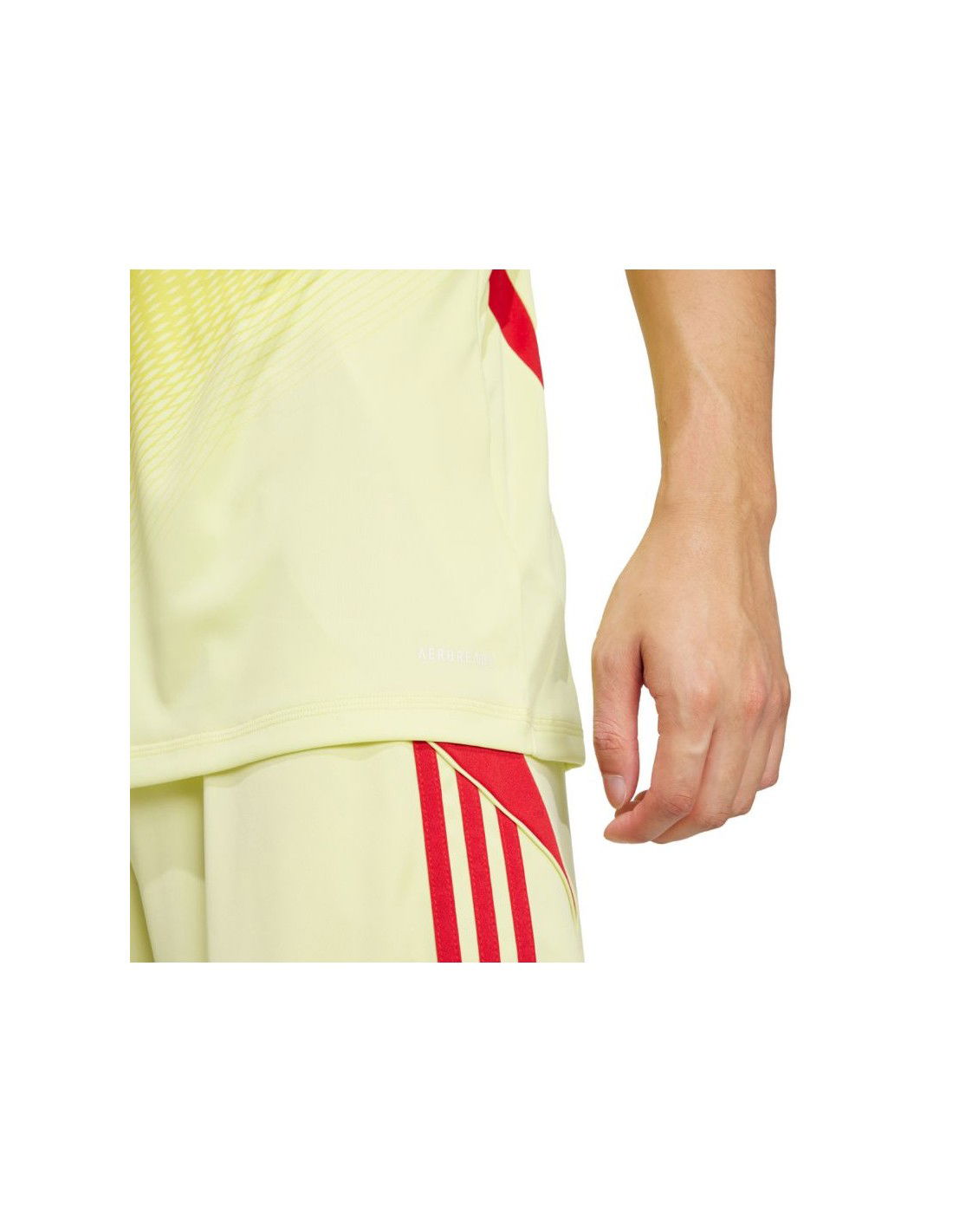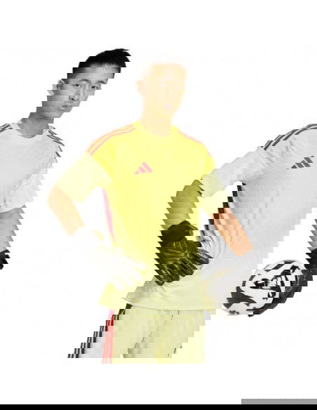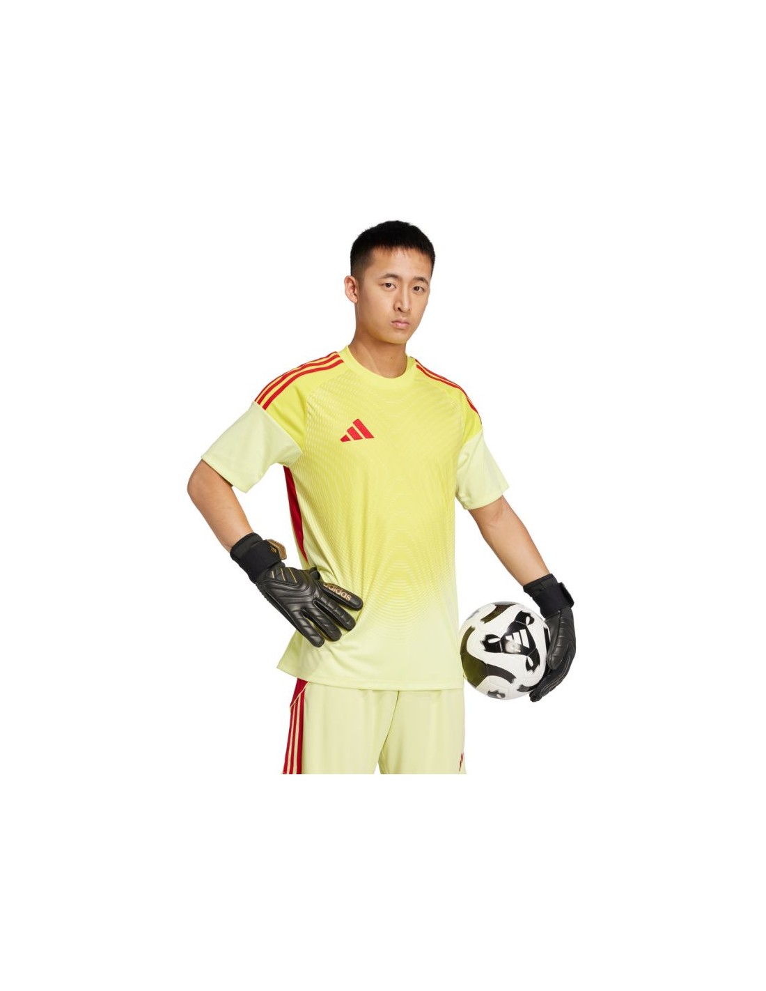 adidas Tiro 25 Competition Short Sleeve Goalkeeper Jersey M Properties: The adidas Tiro 25 Competition Short Sleeve Men's Goalkeeper Jersey, Lime Green and Red, JN2016. This adidas men's goalkeeper jersey will keep you focused on the game. The Aeroready system keeps your skin dry. A fitted cut with a ribbed crew neckline. Short raglan sleeves. Striped shoulder straps and an embroidered adidas logo on the chest. Material: 100% polyester
