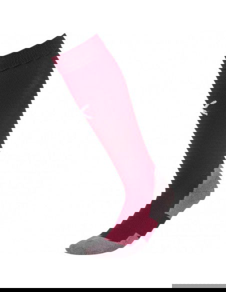 • Puma Liga Socks Core football gaiters in burgundy with gray inserts.