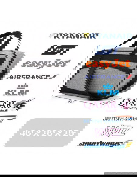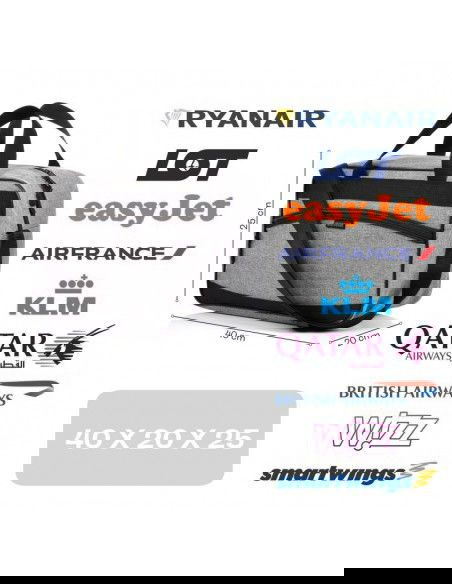 - Its compact dimensions of 40x20x25 allow it to be placed under the seat in an airplane.