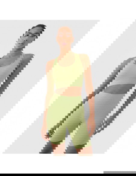 Women's Seamless Training Bra - Low Support, Maximum Comfort This seamless sports bra is designed for comfort during low-impact exercises like yoga, stretching, Pilates, and light cardio. Thanks to 4FDry technology and a seamless construction, it provides maximum comfort and freedom of movement, even when worn for extended periods. Key features: Seamless construction – minimizes the risk of abrasions and irritation, ensuring comfort throughout the entire workout Low support – ideal for leisurely activities like yoga or stretching 4FDry technology – quick-drying material effectively wicks away moisture and improves air circulation Light, flexible fabric – adapts to the body, ensuring comfort and a natural fit Wide straps and elastic band under the bust – stability and gentle support without pressure Breathable material – keeps you feeling fresh and dry even on warmer days For active women who value comfort This bra is an essential wardrobe staple for any woman who exercises moderately but doesn't compromise on quality or style. Its delicate, seamless construction and quick-drying technology make it perfect for everyday wear. Choose lightness, breathability and a natural fit – choose the seamless 4F bra with low support.