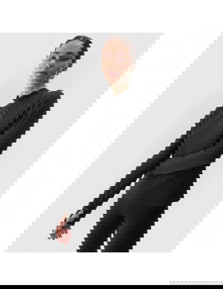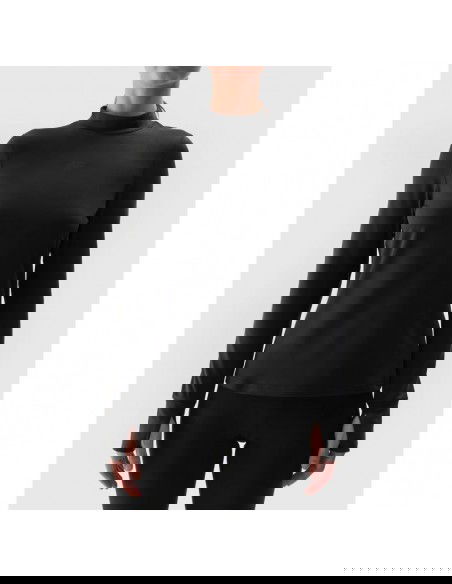 Thermal underwear is made of synthetic material, ensuring durability and easy care. Thanks to the addition of 10% elastane, the material is stretchy and fits comfortably. This women's thermal top features quick-drying fibers that help wick moisture away from the body. The stand-up collar protects against the cold. It works best as a warming second layer , worn directly over a thermal top or under a jacket, especially on cool and cold days. size range: XS-XL cut: slim, which adapts to the silhouette standard cut reaching to the hips made of synthetic material that ensures durability and is easy to care for stretchy material thanks to the addition of elastane (10%) uniform colors that match many styles knit fabric with a brushed interior, suitable as a second layer stand-up collar quick-drying fibers wick away moisture Detailed information about Women's brushed thermal underwear (top) - black Main material: Polyester 90%, Elastane 10%