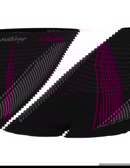 Viking Etna women's thermal underwear black and pink 500-21-3090-46 Properties: Viking Etna women's thermal underwear provides warm protection during winter activities. The technically advanced material guarantees reliable comfort and protection against cold thanks to the efficient removal of moisture to the outside. Seamless, flexible construction. Quick-drying set consisting of a long-sleeved T-shirt, long pants and shorts. Pink details accentuate the compression fit of the black set and create a feminine silhouette. Material : 55% polyester, 37% polyamide, 8% elastane