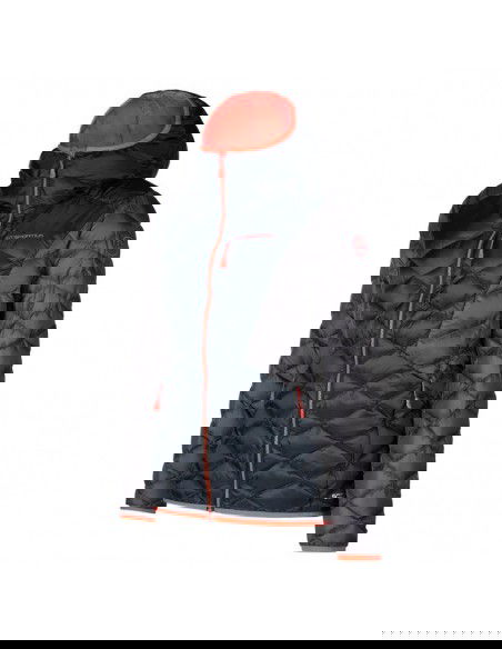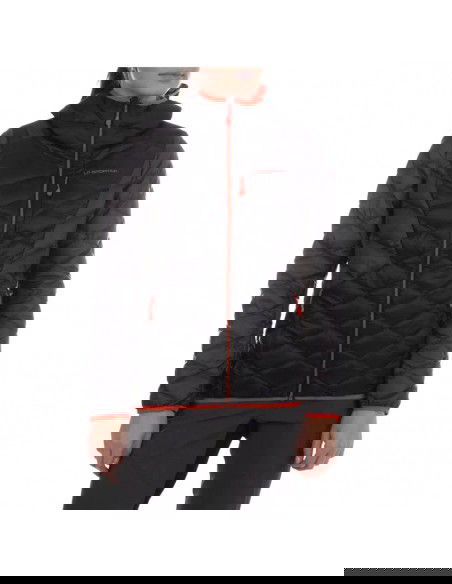 - La Sportiva Pinnacle Down Jkt W M47 999322 Black/Cherry Tomato is a high-quality down jacket, ideal for use on cold days.