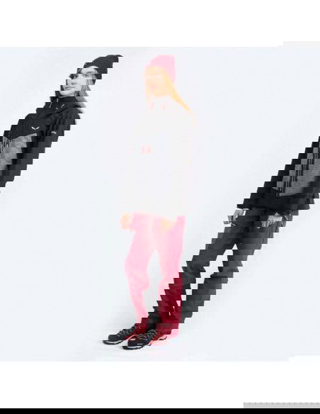 Stormwall is our proprietary, breathable softshell fabric with a tough outer surface that sheds snow and moisture, while the inner support layer and internal windproof membrane allow sweat and moisture vapor to escape, keeping you warm and dry. Its four-way stretch allows for complete freedom of movement in technical terrain. AlpineWool® is made from wool sourced from mountain sheep, blended with polyester yarns.