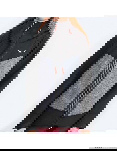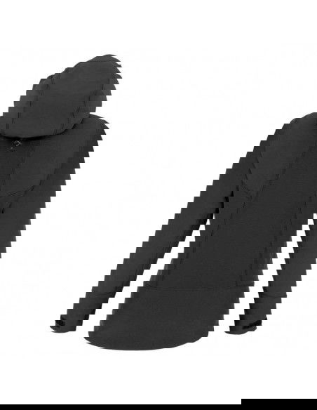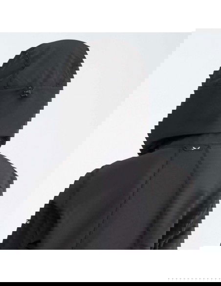 - Storm hood with contoured visor, ergonomically designed for helmet wear, one-handed rear adjustment system
